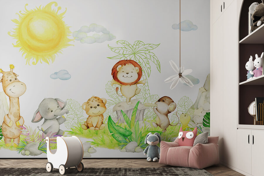 Les parents l’adorent parce qu’il est ludique sans être envahissant. Les couleurs apaisantes et les visages heureux créent une atmosphère à la fois calme et amusante. Imaginez des histoires à l’heure du coucher sous cette peinture murale – c’est comme si vous lisiez dans une jungle magique. La tortue et le bébé lion qui font pipi ne manqueront pas de susciter d’innombrables aventures à l’heure de la récréation ! Cette peinture murale est une source d’ambiance instantanée pour toute chambre d’enfant ou salle de jeux. Elle fera sourire les enfants et les adultes à chaque fois qu’ils entreront dans la pièce.