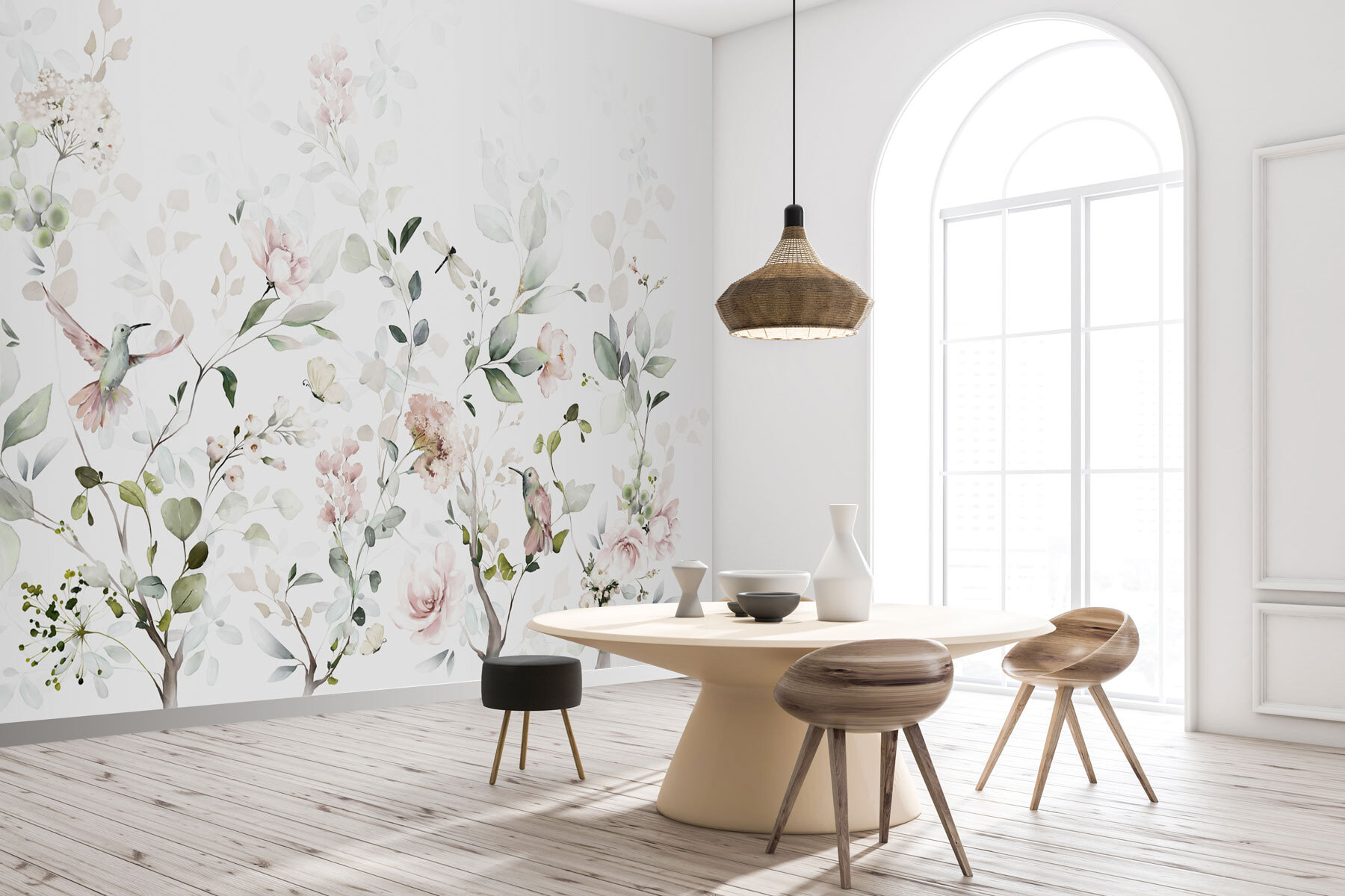 Imaginez ceci : vous sirotez votre café du matin, profitant de la douce lumière du soleil qui traverse votre fenêtre. Entourez-vous maintenant de cette superbe peinture murale “Colibris parmi de délicats motifs floraux”. C’est comme si vous entriez dans un jardin fantaisiste dans votre salon ! Ces oiseaux, avec leurs plumes vibrantes et leurs petites ailes battantes, apportent un sentiment de joie et de sérénité à n’importe quel espace. Les fleurs douces et pastel et le feuillage vert luxuriant dégagent une magie tranquille, comme s’ils murmuraient des secrets de la nature. Parfait pour tous ceux qui aiment la nature, la beauté et une petite touche de fantaisie dans leur décor. Cette peinture murale transformera votre espace en une oasis tranquille et aérée où vous pourrez échapper à l’agitation de la vie quotidienne. Un joli mélange de paix et de beauté – c’est pratiquement comme une thérapie, sur votre mur.