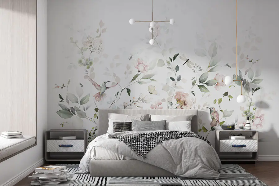 Imaginez ceci : vous sirotez votre café du matin, profitant de la douce lumière du soleil qui traverse votre fenêtre. Entourez-vous maintenant de cette superbe peinture murale “Colibris parmi de délicats motifs floraux”. C’est comme si vous entriez dans un jardin fantaisiste dans votre salon ! Ces oiseaux, avec leurs plumes vibrantes et leurs petites ailes battantes, apportent un sentiment de joie et de sérénité à n’importe quel espace. Les fleurs douces et pastel et le feuillage vert luxuriant dégagent une magie tranquille, comme s’ils murmuraient des secrets de la nature. Parfait pour tous ceux qui aiment la nature, la beauté et une petite touche de fantaisie dans leur décor. Cette peinture murale transformera votre espace en une oasis tranquille et aérée où vous pourrez échapper à l’agitation de la vie quotidienne. Un joli mélange de paix et de beauté – c’est pratiquement comme une thérapie, sur votre mur.
