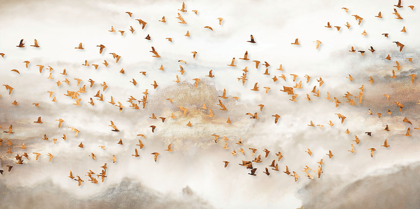 Papier peint Groupe d'oiseaux volant dans le ciel