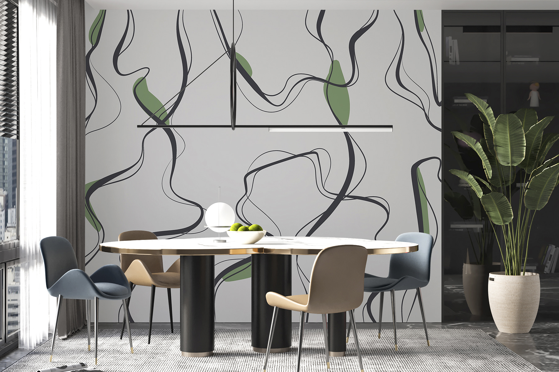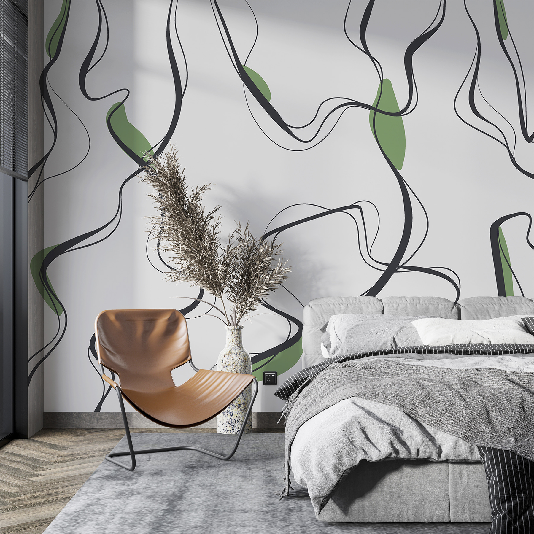 Vous avez déjà pensé que vos murs auraient besoin d’un peu plus d’éclat ? Jetez un coup d’œil à ces superbes “peintures murales vertes et noires”. C’est comme si vous apportiez une touche de nature et d’art dans votre maison d’un seul coup. Le mélange de lignes abstraites et de touches feuillues attirera votre attention à chaque fois que vous passerez devant. Imaginez que vous sirotiez votre café du matin avec cette beauté sur votre mur – il y a quelque chose d’apaisant et d’énergisant à la fois. Il est parfait pour ceux qui aiment les ambiances modernes et design, mais qui souhaitent tout de même un petit clin d’œil à la nature. Cette œuvre est un véritable sujet de conversation : vos amis vous poseront des questions à son sujet, c’est garanti !