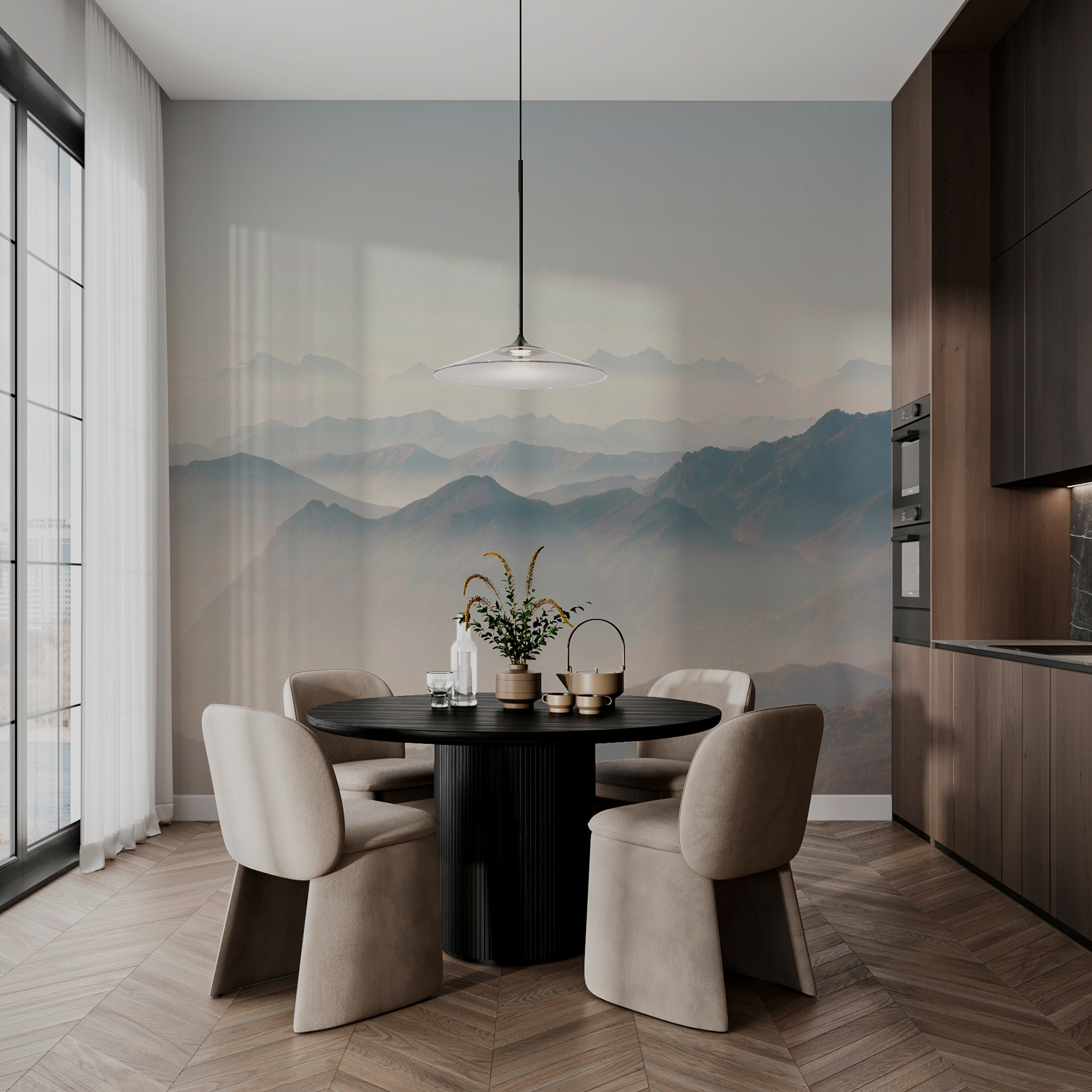 Transformez n’importe quel espace en un lieu d’évasion sereine grâce à cette superbe peinture murale d’une chaîne de montagnes enveloppée de brouillard. Imaginez que vous sirotiez un café un dimanche matin paresseux en contemplant ces sommets doux et ondulants. C’est comme une mini-vacance pour les murs. Les couleurs sourdes évoquent un sentiment de calme, parfait pour un salon confortable ou une chambre à coucher tranquille. Imaginez cette peinture murale créant une toile de fond qui suscite des rêves d’air frais et de randonnées en montagne, sans avoir besoin de chaussures de marche. C’est un décor qui raconte une histoire, qui fait entrer la nature à l’intérieur avec un soupçon d’aventure.