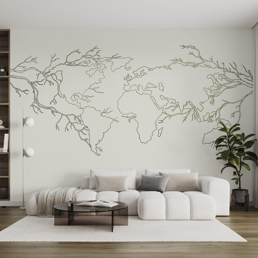 Le papier peint “Papier peint Map of the World” n’est pas un papier peint ordinaire. Imaginez que vous puissiez donner à votre chambre une touche d’exotisme grâce à ce motif unique composé de branches délicates formant les continents. Parfait pour une chambre d’enfant ou un coin spécial, c’est comme si vous aviez une petite aventure sur votre mur – sans le décalage horaire.