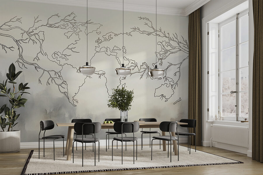 Jetez un coup d’œil à cette peinture murale “Carte du monde”. Il ne s’agit pas de n’importe quelle carte : imaginez de fines et élégantes branches s’étendant sur vos murs, formant le monde dans votre salon. C’est comme si vous aviez une œuvre d’art qui vous attire à chaque fois que vous y jetez un coup d’œil. De plus, il ajoute une touche d’exotisme à n’importe quel espace, le rendant ouvert et aventureux. Parfait pour le salon, le bureau ou même un coin lecture confortable. Imaginez-vous en train de tracer des chemins vers des endroits que vous avez visités ou de rêver à des contrées lointaines. C’est plus qu’une simple carte, c’est une évasion quotidienne, juste là, sur votre mur !