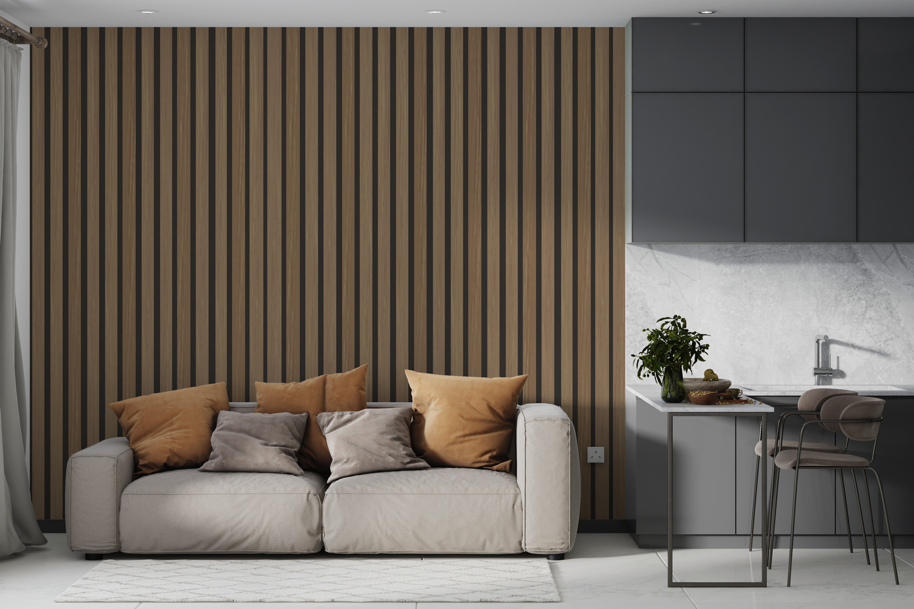 Vous avez toujours souhaité que votre pièce puisse refléter l’ambiance à la fois confortable et chic d’une cabane moderne ? La peinture murale “Motif de lattes en bois avec ombres” est comme une arme secrète pour vos murs. Pensez à des panneaux de bois élégants baignés d’ombres douces – c’est toute la simplicité zen-boisée dont vous avez besoin sans l’inconvénient du bois réel.
