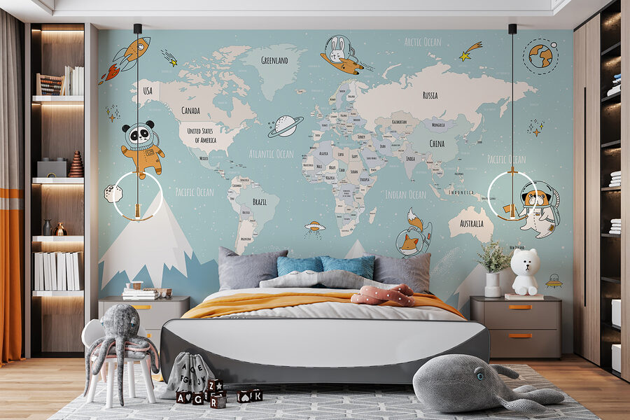 Imaginez une aventure sans même sortir de chez vous ! Voici une peinture murale qui représente une carte du monde, parsemée d’adorables pics montagneux, de nuages cotonneux et des plus adorables petits astronautes et bestioles qui explorent l’espace. Parfaite pour une chambre d’enfant ou une crèche, elle est à la fois amusante et éducative. Vos enfants peuvent rêver d’endroits lointains et d’aventures dans l’espace. Qui a besoin d’une histoire pour s’endormir quand les murs racontent leur propre histoire ? Cette peinture murale donne vie à la pièce en suscitant l’enthousiasme et la curiosité. Ce n’est pas seulement une décoration, c’est une escapade quotidienne pour vos petits explorateurs. De plus, ces couleurs et ces dessins fantaisistes ? C’est tout à fait confortable et accueillant. C’est comme si l’on enveloppait toute la pièce d’un câlin chaleureux et imaginatif.