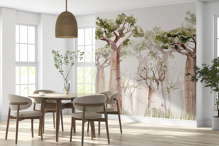 Plongez dans un paysage de rêve avec la peinture murale “Majestic Baobabs in Watercolor Forest”, parfaite pour transformer n’importe quel espace en une forêt fantaisiste. Imaginez que vous entrez dans une pièce où ces baobabs imposants vous accueillent avec leur charme doux et aquarellé. Les enfants l’adoreraient, se sentant comme des mini explorateurs dans une forêt luxuriante et magique. Les teintes douces apportent une touche de confort et de nature tout en ajoutant un peu de mysticisme. Imaginez une chambre d’enfant ou une salle de jeux transformée en une retraite enchanteresse ; c’est comme si l’heure du conte venait d’être améliorée. Les verts doux et les tons terreux sont très apaisants, ce qui les rend idéaux pour un coin lecture ou même comme toile de fond pour la relaxation quotidienne. C’est exactement ce qu’il faut pour tous ceux qui souhaitent apporter une touche tropicale et une touche de créativité dans leur maison. Préparez-vous à recevoir tous les compliments et peut-être même quelques “ooh” et “aah” !