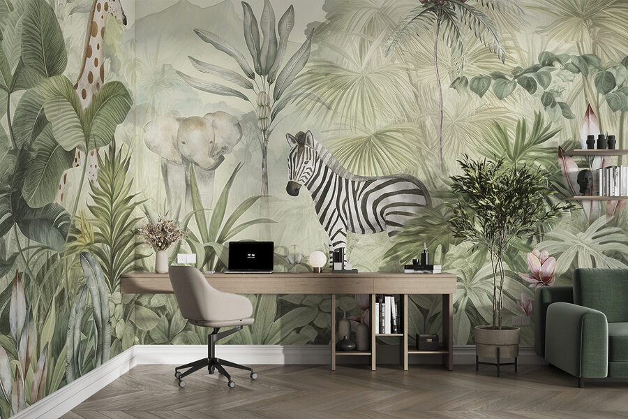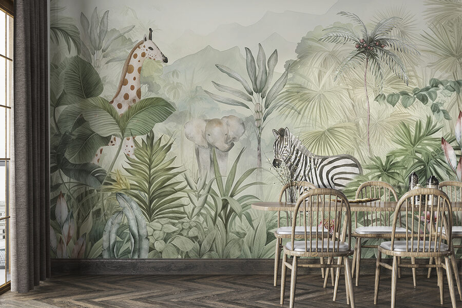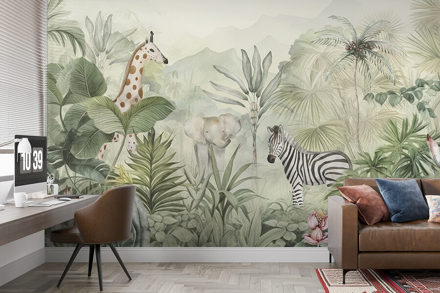 Imaginez que vous pénétrez dans une jungle grouillante de vie – mais dans votre propre chambre ! Cette peinture murale “Animals Roam Tranquil Jungle Landscape” est une pure magie pour les yeux. Éléphants, zèbres et girafes se promènent paisiblement dans cette verdure luxuriante si vivante que vous en sentirez presque l’humidité ! Idéal pour les enfants et les nourrissons, c’est un mélange apaisant d’aventure et de sérénité, qui éveille les imaginations les plus folles. Les pastels doux et les détails complexes en font un élément remarquable dans n’importe quel espace. Parfait pour les amoureux de la nature ou ceux qui souhaitent simplement s’évader – sans quitter leur maison.
