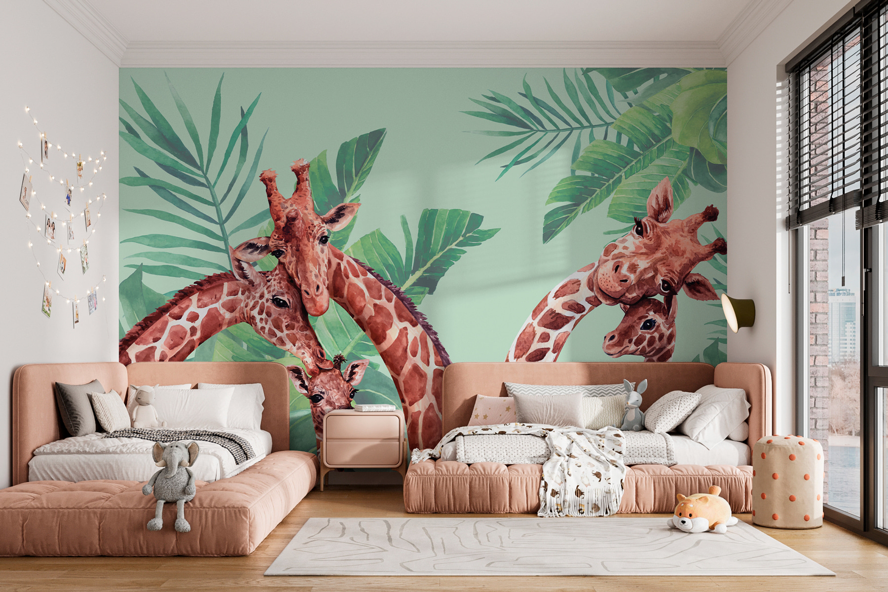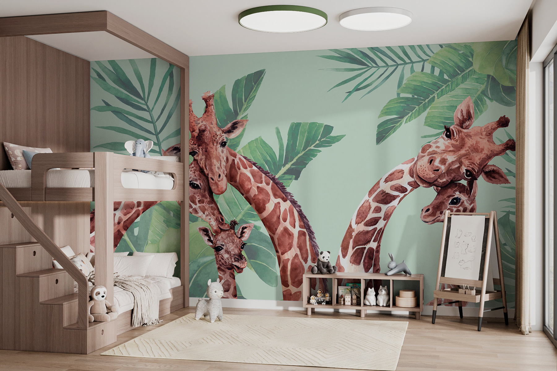 Imaginez que vous entrez dans une pièce et que vous êtes accueilli par une joyeuse bande de girafes sur une toile de fond verte et luxuriante. Cette peinture murale est comme une joyeuse tranche de safari dans votre maison. Il est parfait pour les chambres d’enfants, les crèches ou tout autre espace qui a besoin d’une touche amusante inspirée par la nature. Chaque girafe, avec son expression adorable et douce, semble dire “Hé là, mon ami !”. C’est un peu comme si ces grands gaillards sortaient de la jungle, ajoutant une touche d’aventure et de fantaisie. Si vous connaissez quelqu’un qui aime les animaux ou qui souhaite insuffler un peu de vie sauvage dans son décor, cette peinture murale est un choix fantastique. De plus, qui ne sourirait pas à chaque fois qu’il voit ces gentils géants ? Que les enfants s’imaginent jouer sous les arbres ou que les teintes vertes apaisantes fassent oublier une longue journée, cette peinture murale est plus qu’un simple papier peint – c’est une ambiance.
