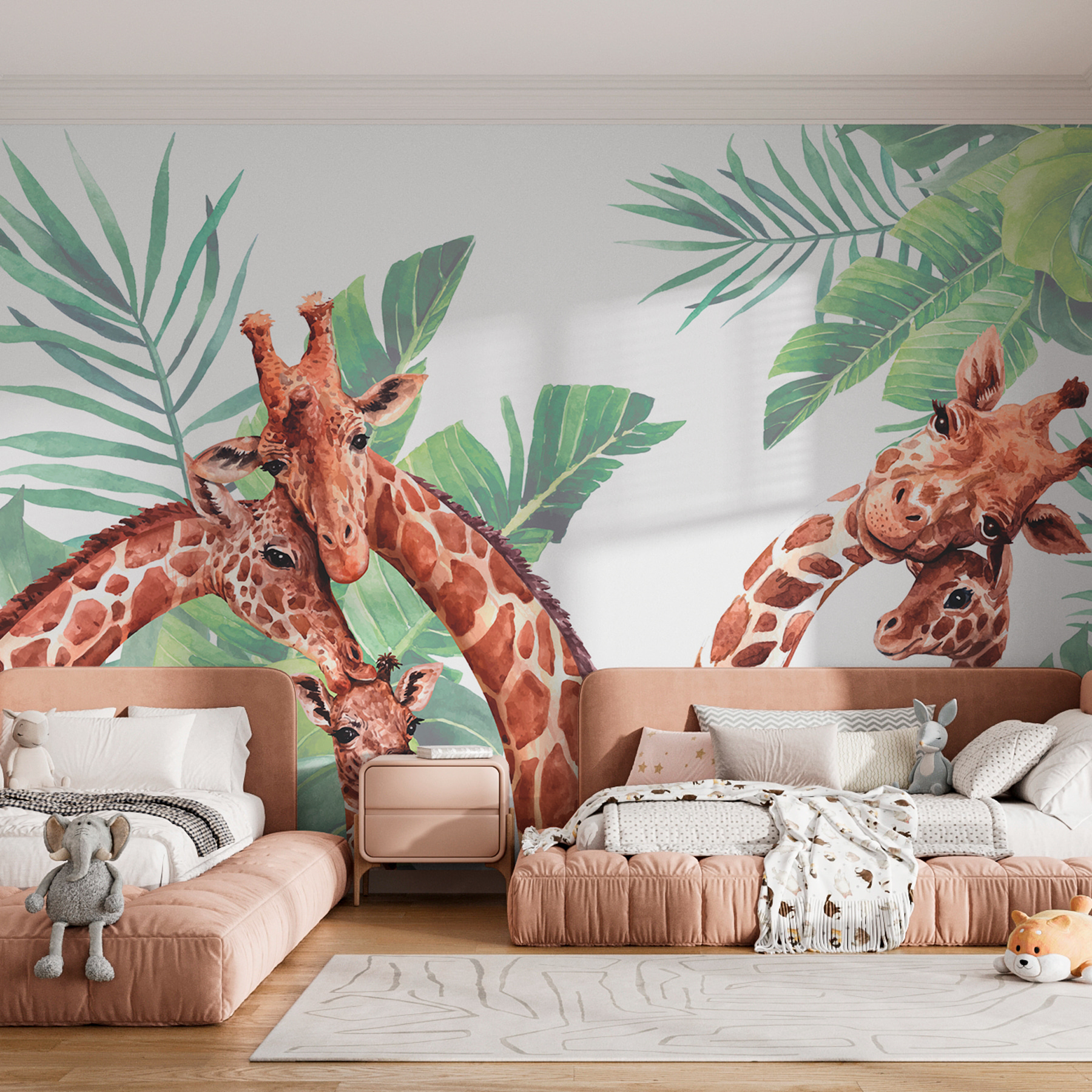 Imaginez que vous vous réveillez avec une charmante famille de girafes qui vous salue gentiment le matin ! Le “Tableau mural Groupe de girafes avec feuilles” est comme une joyeuse aventure de safari directement sur votre mur. Parfaites pour les chambres d’enfants ou tout autre espace ludique, ces girafes, avec leurs yeux doux et leurs expressions curieuses, rendent tout un peu plus magique. De plus, ces feuilles vertes luxuriantes ajoutent une touche de fraîcheur et d’apaisement. On croirait entendre le bruissement des feuilles et le doux murmure des girafes. Idéal pour stimuler l’imagination et créer une retraite fantaisiste inspirée de la nature à la maison. Que ce soit pour la chambre d’enfant ou pour surprendre l’amoureux des animaux dans votre vie, cette peinture murale apporte de la chaleur et de l’émerveillement dans n’importe quelle pièce.