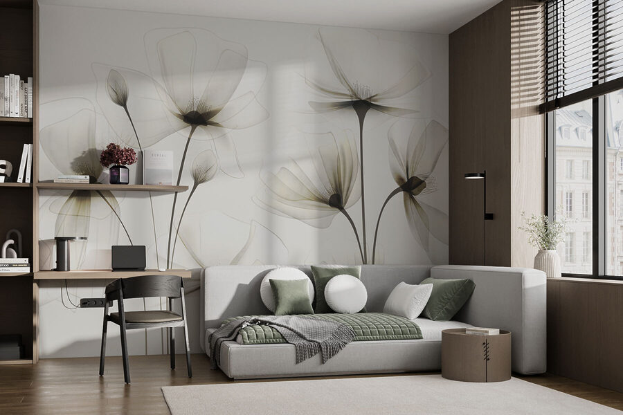 Vos murs ont besoin d’un peu de magie ? Jetez un coup d’œil à cette peinture murale avec ces fleurs si délicates qui semblent presque flotter dans l’air. Les pétales doux et transparents sur une toile de fond blanche dégagent une atmosphère sereine et apaisante. Imaginez que vous vous réveillez tous les jours devant cette beauté, comme si vous aviez votre propre jardin paisible sans avoir à l’arroser.