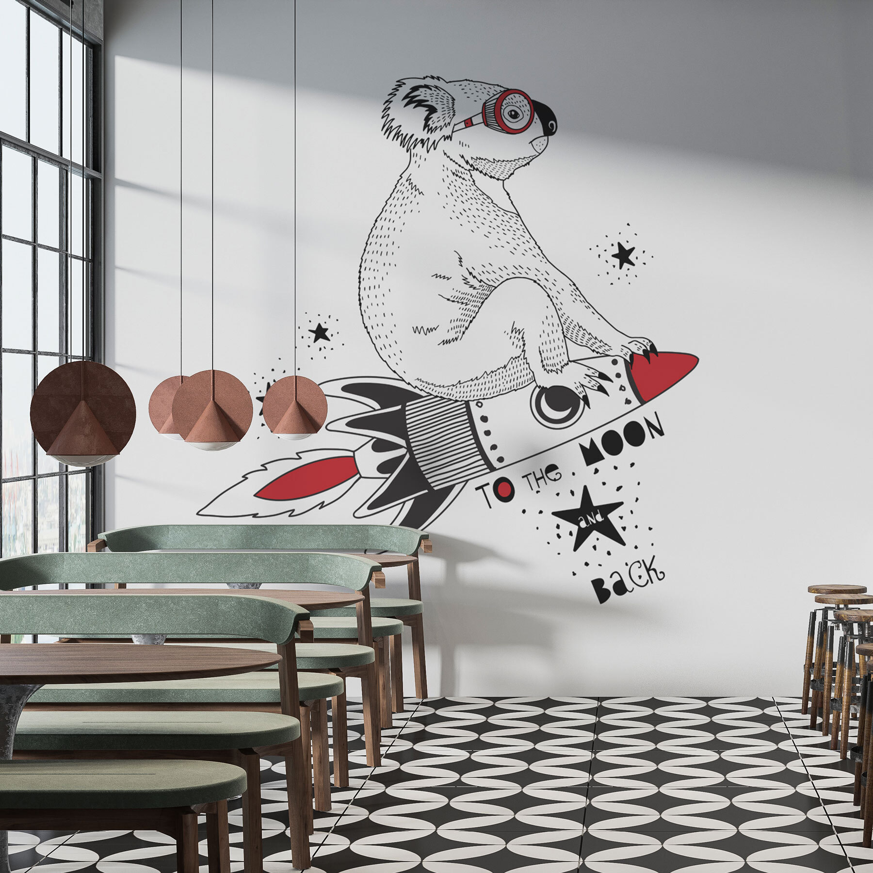 Jetez un coup d’œil à cette adorable peinture murale intitulée “Koala on a Rocket” (Koala sur une fusée). Parfaite pour ajouter un peu de charme fantaisiste à n’importe quelle pièce, cette peinture murale s’inscrit parfaitement dans les catégories Animaux, Enfants, Galaxie, Bébés – vous voyez l’idée. Imaginez un koala portant des lunettes d’aviateur et chevauchant une superbe fusée en direction de la lune ! L’espace de votre enfant devient soudain un petit morceau d’une galaxie amusante. C’est tout à fait le genre de chose qui donne le coup d’envoi des histoires à dormir debout, n’est-ce pas ? Il est délicieusement excentrique et ne manquera pas d’illuminer les petits yeux de votre enfant et d’éveiller son imagination. Imaginez les “oohs” et les “aahs” de tous ceux qui le verront ! De plus, c’est un moyen fantastique de faire naître des rêves d’exploration et d’aventures dans l’espace. Avec cette peinture murale, vous décorez littéralement les rêves. Jusqu’à la lune et vice-versa, en effet !