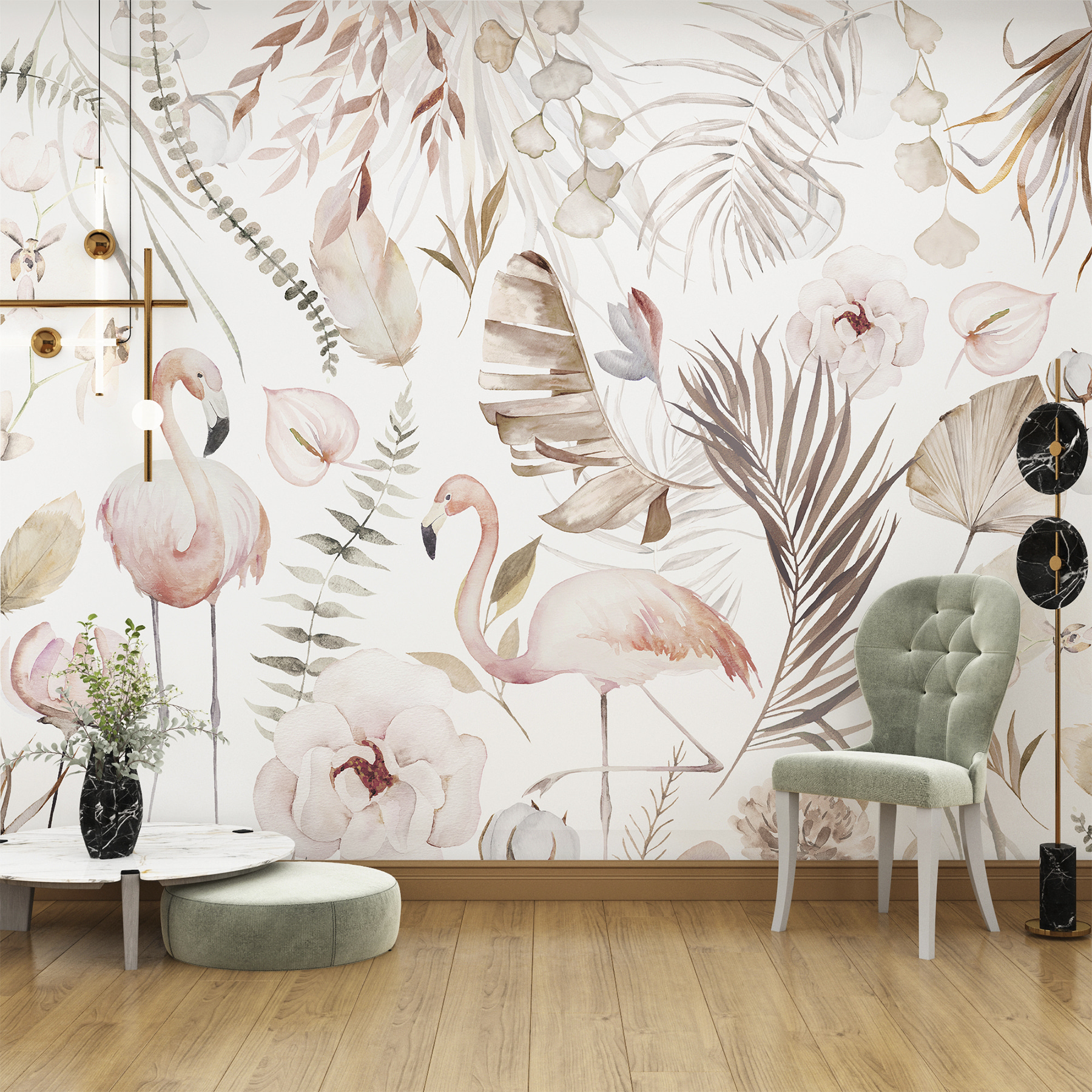 Imaginez donner à votre espace une dose de paradis, avec “Flamingos Dance Amidst Botanical Dreams” (Les flamants roses dansent au milieu des rêves botaniques). Cette peinture murale vous transporte dans une jungle de rêve où d’élégants flamants roses côtoient un jardin luxuriant à la flore exotique. Parfait pour ceux qui aiment les tropiques, c’est comme des mini-vacances sur votre mur. Les couleurs douces et le design fantaisiste ajoutent une ambiance à la fois sereine et ludique. Vous pourriez même vous surprendre à rêvasser à des après-midi paresseux et ensoleillés au bord de la plage. Sérieusement, c’est un véritable coup de cœur. Il est idéal pour les salons, les chambres à coucher et tous les coins qui ont besoin d’une touche de vie et de couleur. Croyez-moi, vos murs vous remercieront !