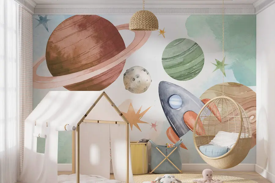 Imaginez : vous entrez dans une pièce et boum ! Une fusée passe devant des planètes colorées, apportant toute la magie de l’espace sur vos murs. Cette peinture murale “Fusée passant devant des planètes colorées” est un mélange rêvé d’aquarelle vibrante et de merveilles célestes – c’est comme si vous aviez un morceau de la galaxie à l’intérieur. Elle est parfaite pour les enfants de tous âges (même les “grands enfants”, c’est-à-dire les adolescents et les adultes). Il ne manquera pas de susciter la curiosité et le sens de l’aventure. Imaginez que les histoires racontées à l’heure du coucher se transforment en missions spatiales épiques. Décollage !