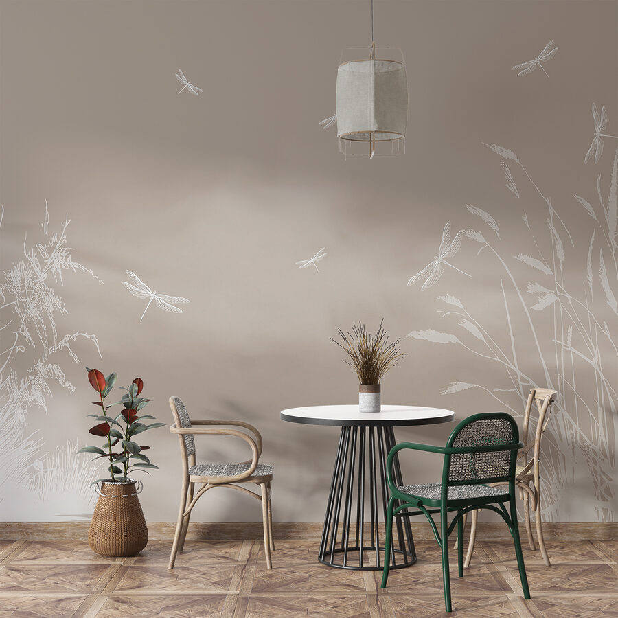Cette peinture murale n’est pas seulement une décoration, c’est aussi un sujet de conversation. Vos amis entreront, regarderont à deux fois et se demanderont si vous avez installé une fenêtre donnant sur une prairie paisible. Les couleurs subtiles créent une atmosphère à la fois douillette et aérée, parfaite pour toute pièce qui a besoin d’une touche de fantaisie et de nature. De plus, pas besoin d’avoir la main verte ici – juste l’élégance paisible des libellules qui passent. Parfait pour les amoureux de la nature ou pour tous ceux qui ont besoin d’une petite bouffée d’air frais à l’intérieur.