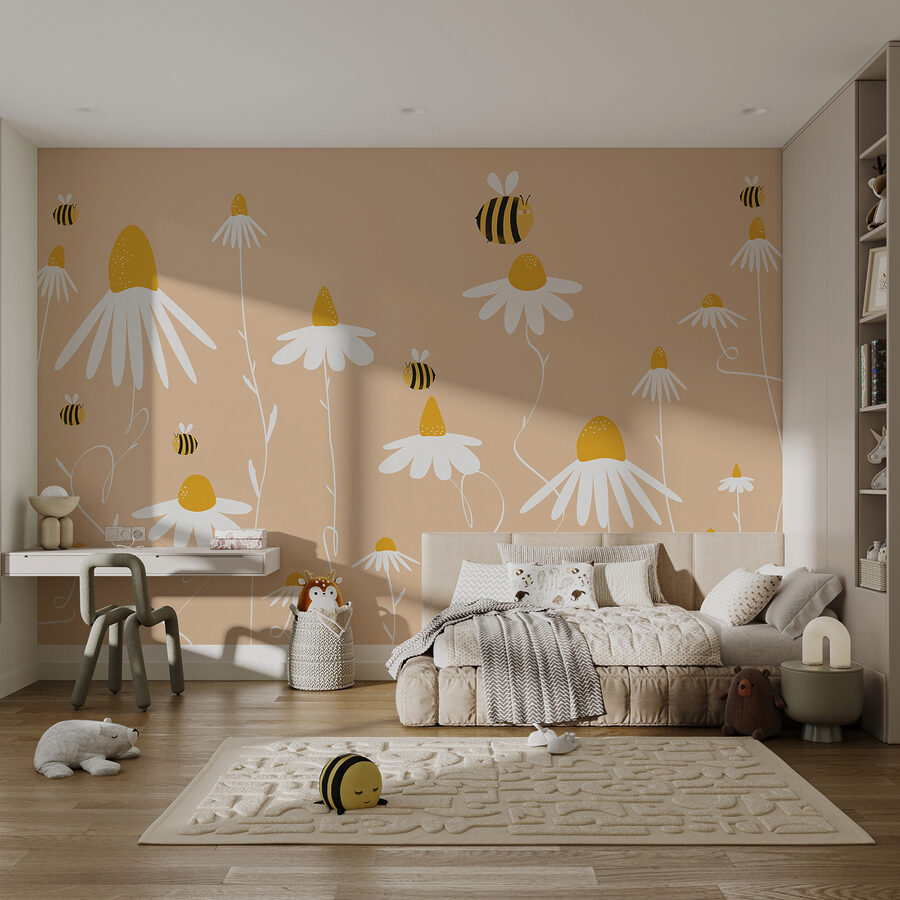 Et ces petites abeilles sympathiques qui bourdonnent autour de nous – trop mignonnes, n’est-ce pas ? Elles ajoutent une touche charmante qui donne l’impression d’être vivante et bourdonnante d’énergie. Que vous soyez jeune ou jeune de cœur, cette peinture murale a ce charme incomparable qui transforme n’importe quelle pièce de “moche” en “merveilleuse”.