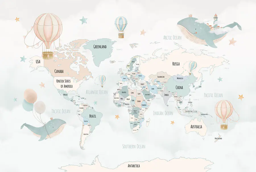Vous avez déjà rêvé de faire le tour du monde en montgolfière ? Cette adorable peinture murale vous donne l’impression de vous envoler sans quitter votre coin douillet. Avec ses montgolfières fantaisistes bleues et blanches, ses baleines espiègles et ses étoiles pastel flottant au-dessus d’une douce carte du monde, il est parfait pour éveiller la curiosité et apporter un esprit ludique à n’importe quel espace. Imaginez une chambre d’enfant où les histoires racontées à l’heure du coucher se transforment en aventures mondiales, ou une chambre d’enfant qui s’apaise grâce à sa palette douce et rêveuse. Ce n’est pas seulement une peinture murale, c’est une invitation à l’exploration. La toile de fond de votre prochaine histoire fantastique ? Fait.