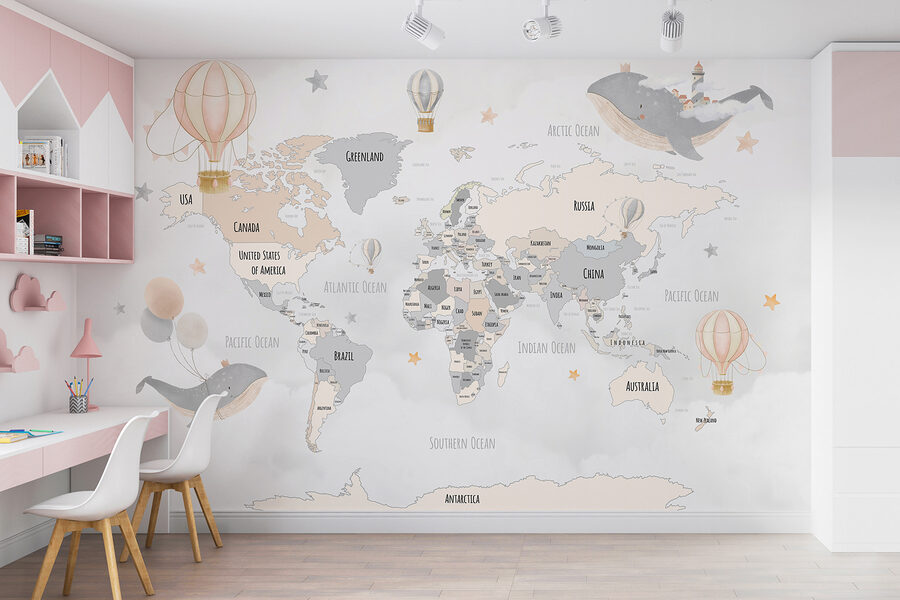 Transformez n’importe quelle pièce en une escapade de rêve grâce à cette peinture murale enchanteresse représentant une carte du monde parsemée de montgolfières fantaisistes et de baleines enjouées. Imaginez vos petits aventuriers contemplant ce charmant motif, éveillant leur imagination et leurs rêves de contrées lointaines. Les couleurs douces créent une ambiance apaisante, parfaite pour une chambre d’enfant ou une salle de jeux. C’est comme un doux rappel à l’exploration du monde, même si ce n’est qu’en rêvant. Qui ne voudrait pas qu’une baleine flottante le guide vers de nouvelles aventures ? Laissez cette peinture murale inspirer des histoires amusantes et une créativité sans fin dans votre espace.