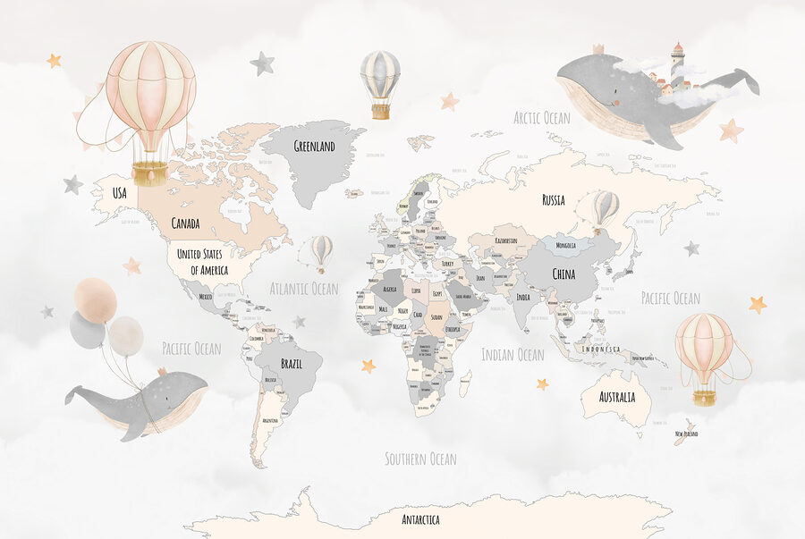 Transformez n’importe quelle pièce en une escapade de rêve grâce à cette peinture murale enchanteresse représentant une carte du monde parsemée de montgolfières fantaisistes et de baleines enjouées. Imaginez vos petits aventuriers contemplant ce charmant motif, éveillant leur imagination et leurs rêves de contrées lointaines. Les couleurs douces créent une ambiance apaisante, parfaite pour une chambre d’enfant ou une salle de jeux. C’est comme un doux rappel à l’exploration du monde, même si ce n’est qu’en rêvant. Qui ne voudrait pas qu’une baleine flottante le guide vers de nouvelles aventures ? Laissez cette peinture murale inspirer des histoires amusantes et une créativité sans fin dans votre espace.