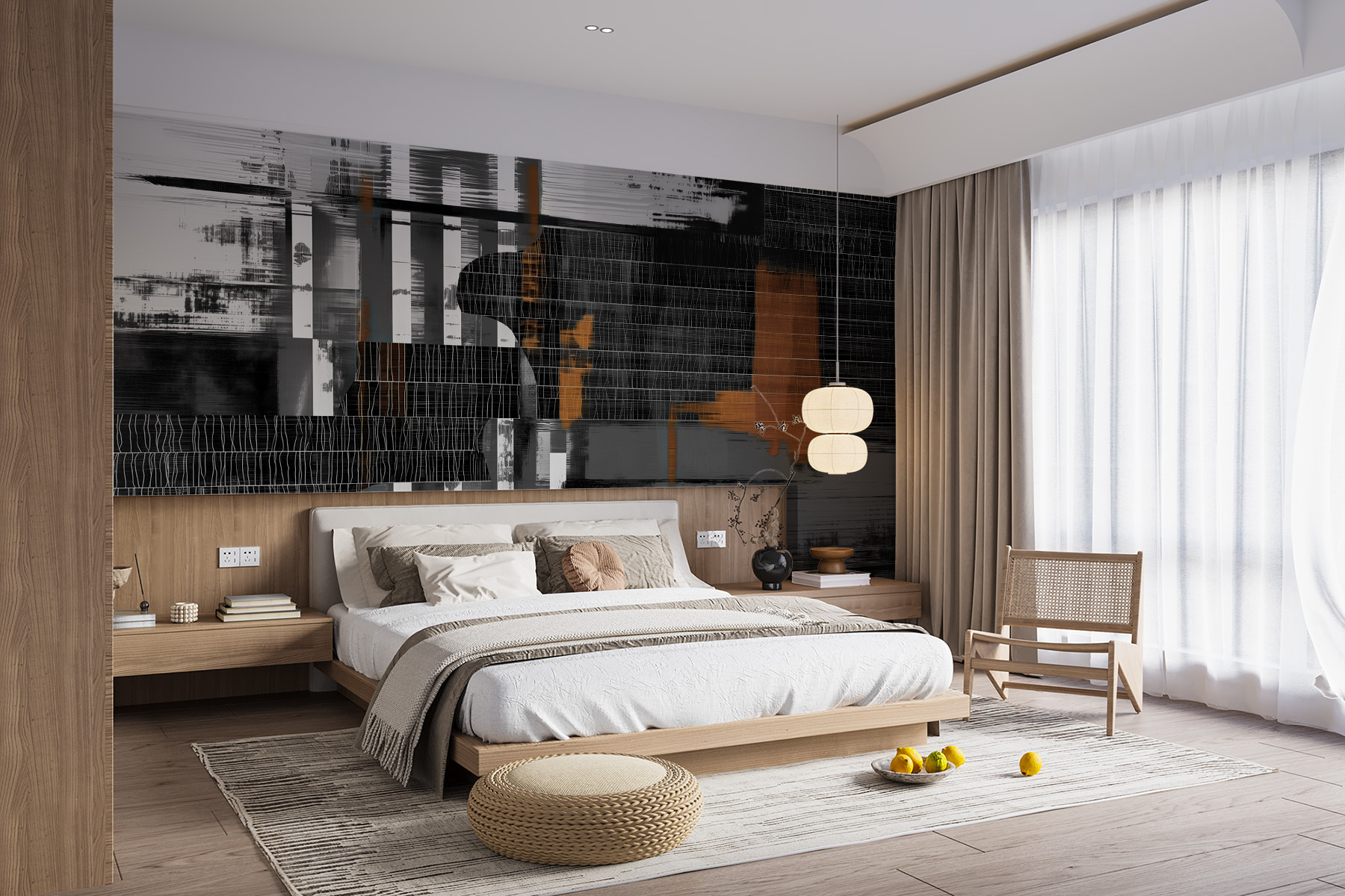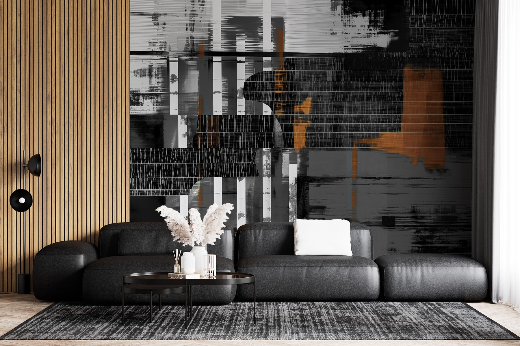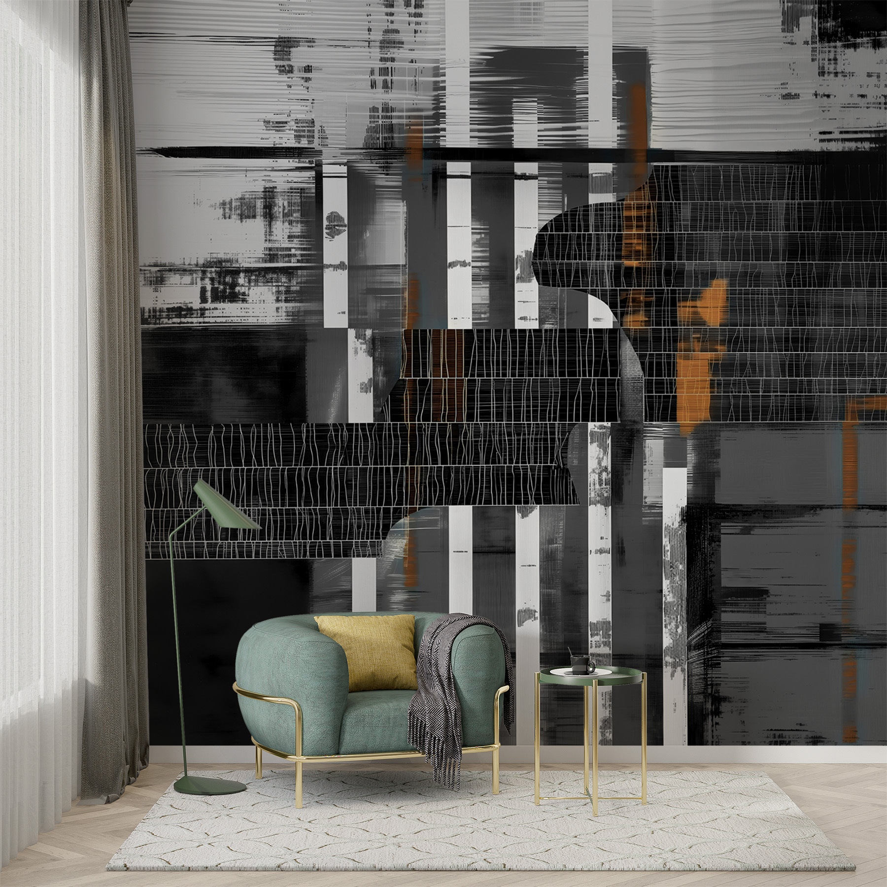Transformez n’importe quel espace avec cette superbe peinture murale, qui présente des lignes abstraites audacieuses et des motifs superposés qui invitent à la curiosité. C’est un véritable sujet de conversation, où chaque regard découvre un nouveau détail – sérieusement, vous risquez de perdre le fil du temps en l’admirant. Imaginez que vous recevez des amis et que vous voyez leurs visages s’illuminer lorsqu’ils entrent dans la pièce. L’ambiance est à la fois morose et dynamique, et apporte sans effort de l’énergie à votre espace. Qu’il s’agisse d’un coin lecture confortable ou d’une salle à manger animée, cette peinture murale ajoute une touche artistique à la fois moderne et accueillante. Laissez les murs parler !
