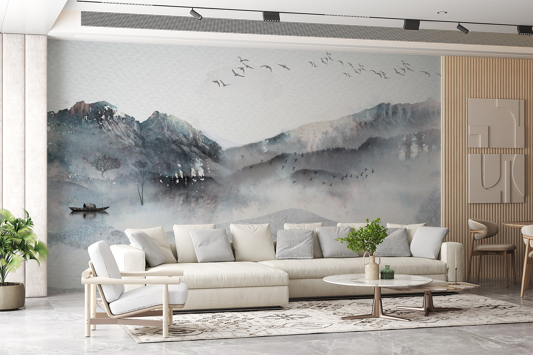 Imaginez que vous entrez dans une pièce et que vous êtes accueilli par un groupe d’oiseaux sereins planant dans un ciel de rêve, dérivant au-dessus d’un paysage forestier brumeux. Cette aquarelle murale n’est pas seulement de l’art, c’est une expérience. La brume apaisante, les douces collines et les montagnes lointaines sont comme un doux murmure de la nature. C’est presque comme si vous pouviez entendre le murmure des arbres et sentir l’air frais et vivifiant du matin effleurer votre peau.