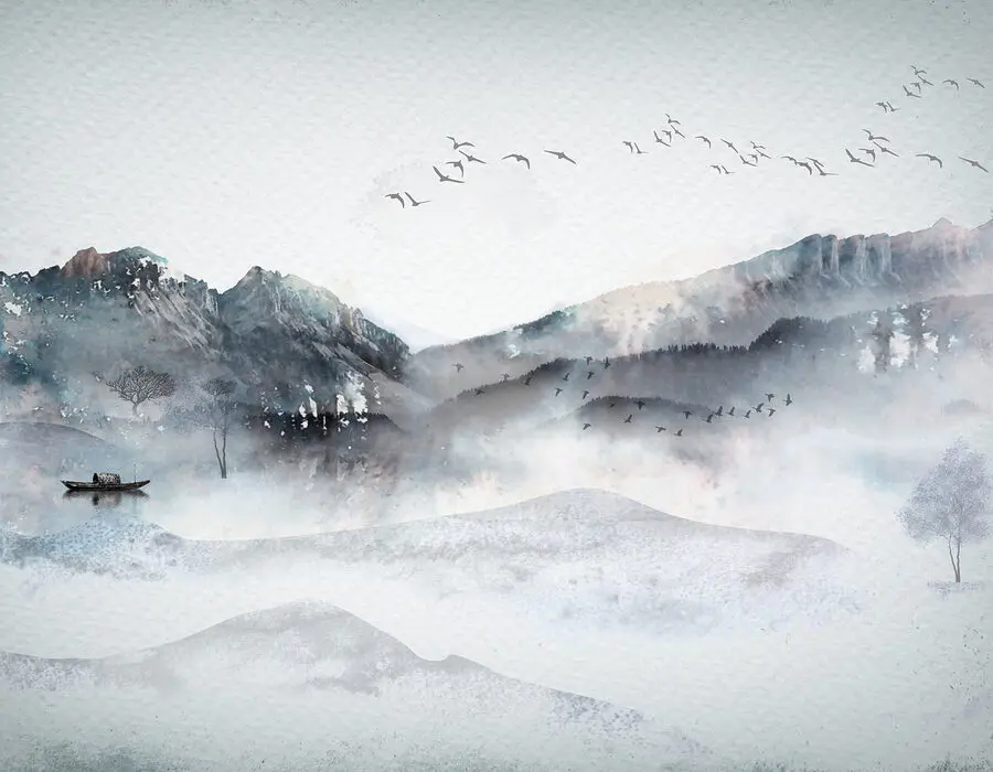Imaginez que vous entrez dans une pièce et que vous êtes accueilli par un groupe d’oiseaux sereins planant dans un ciel de rêve, dérivant au-dessus d’un paysage forestier brumeux. Cette aquarelle murale n’est pas seulement de l’art, c’est une expérience. La brume apaisante, les douces collines et les montagnes lointaines sont comme un doux murmure de la nature. C’est presque comme si vous pouviez entendre le murmure des arbres et sentir l’air frais et vivifiant du matin effleurer votre peau.