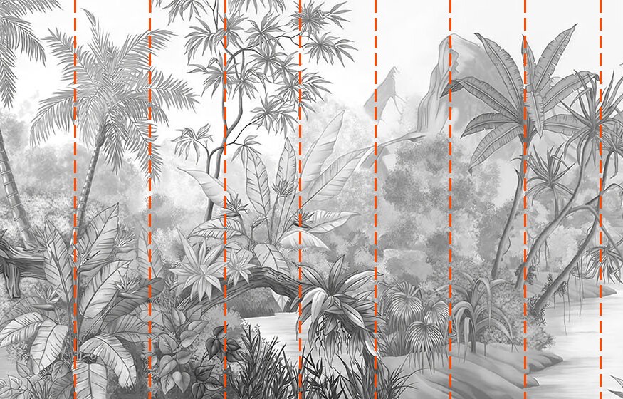 Votre papier peint sera préparé selon les dimensions que vous avez indiquées lors du processus de commande. La toile sera divisée en sections pratiques, chacune d’une largeur maximale de 50 cm.
