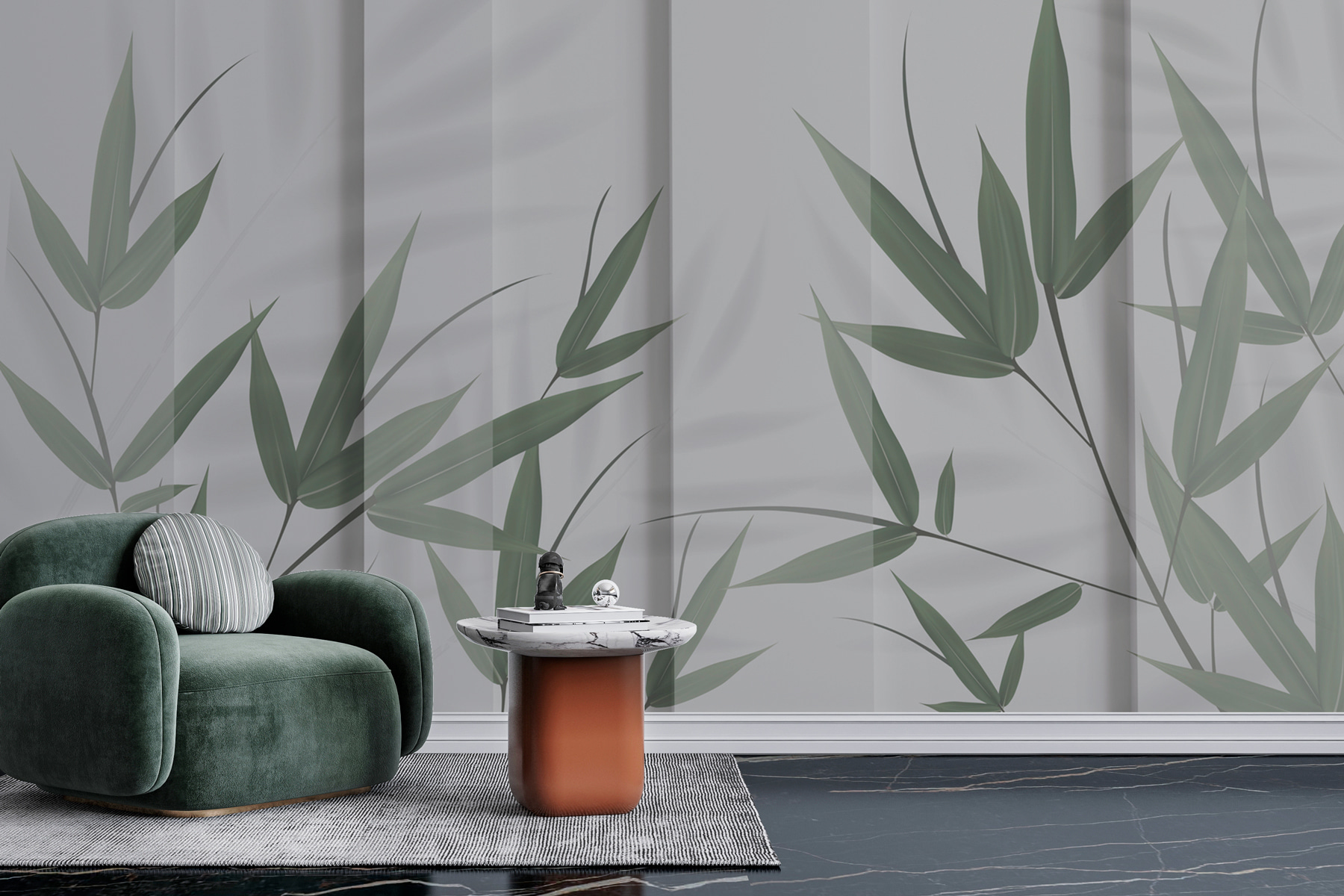 Voyez exactement à quoi ressemblera votre espace avec un nouveau papier peint avant d’acheter. Visualisation professionnelle par des designers experts, sans aucun coût ni obligation d’achat.