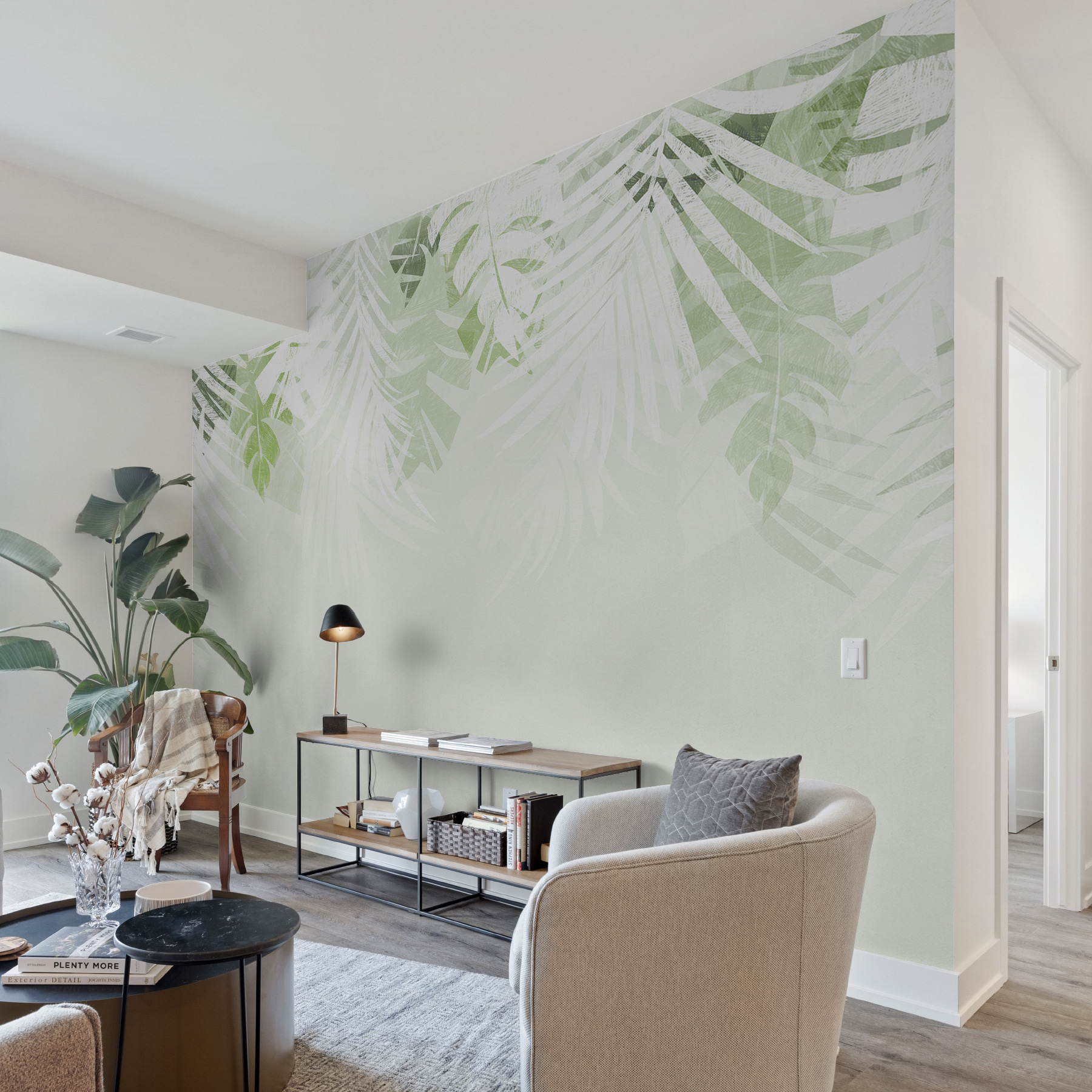 Ajoutez un peu de verdure, une chaise confortable, peut-être un bon livre, et voilà – une retraite parfaite et verdoyante. Que vous soyez un citadin en quête d’une touche de nature ou simplement quelqu’un qui aime l’esthétique des feuilles, cette peinture murale est une véritable bouffée d’air frais. Alors pourquoi ne pas apporter un peu des tropiques sur vos murs ? Vous le méritez bien.