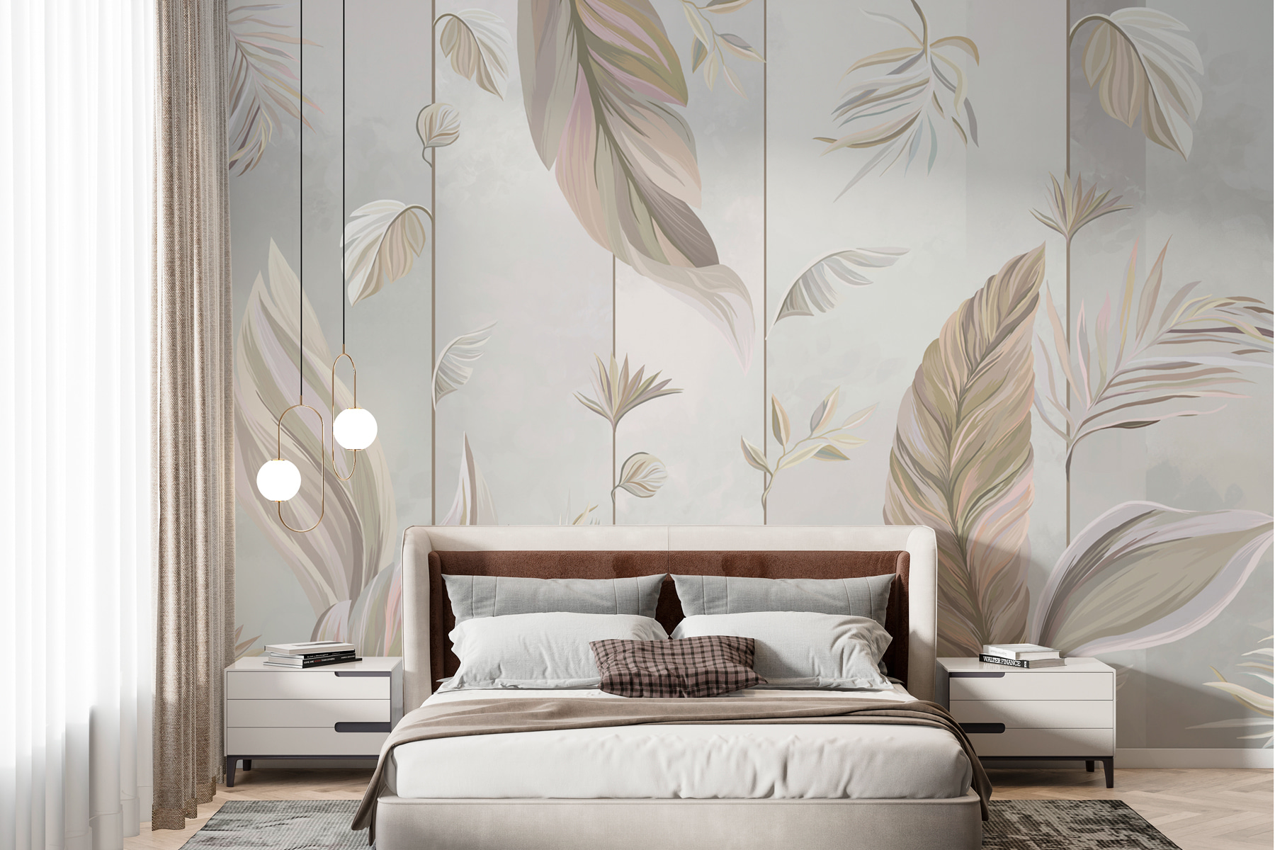 Transformez votre espace avec la peinture murale “Elegant Leaves” ! Imaginez que vous vous trouvez dans un jardin serein chaque fois que vous entrez dans la pièce. Les douces teintes pastel sont comme un doux murmure de couleur, donnant à l’ensemble une impression de calme et de fraîcheur. C’est le genre de peinture murale qui vous donne envie de vous asseoir avec un bon livre (et peut-être une tasse de thé).