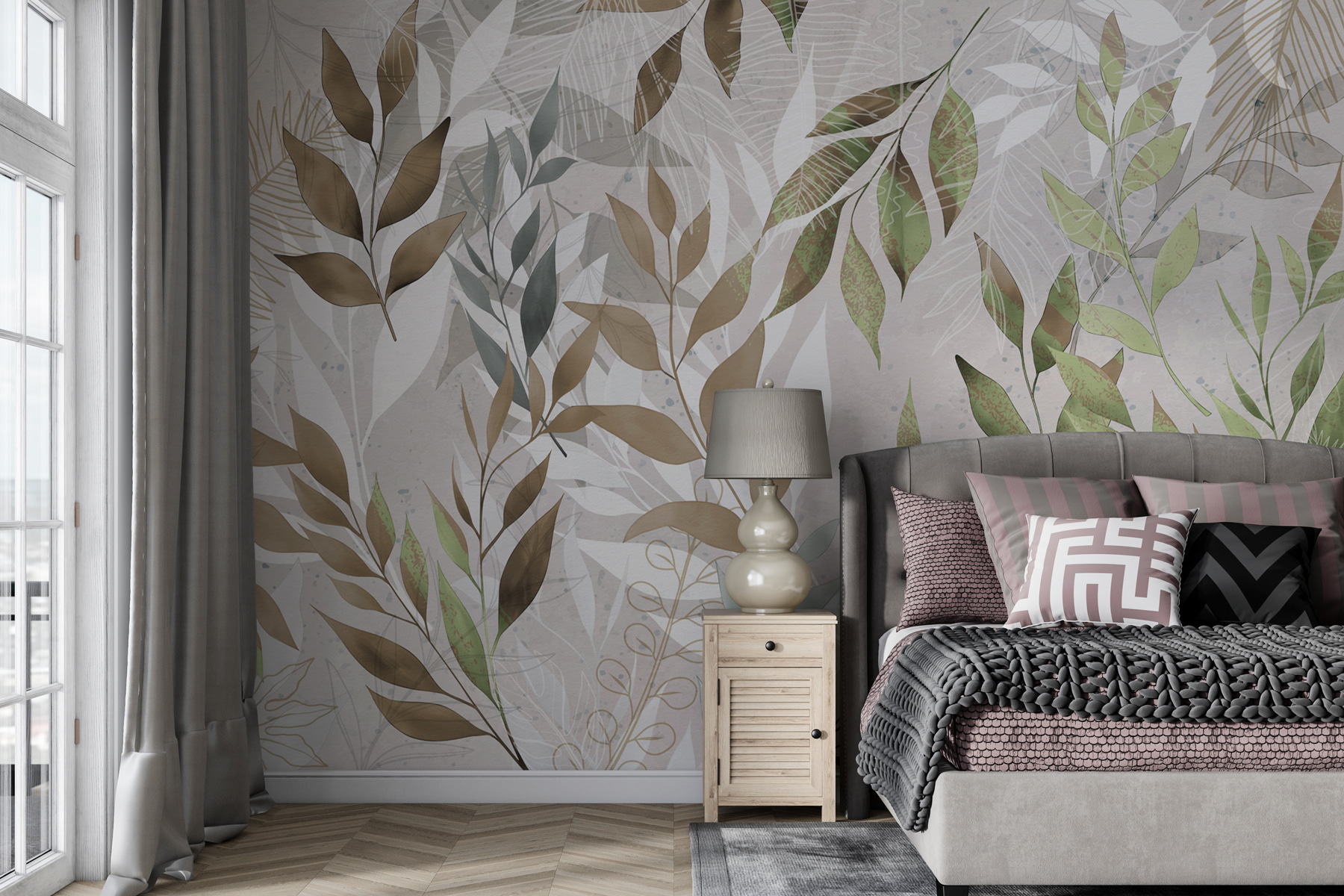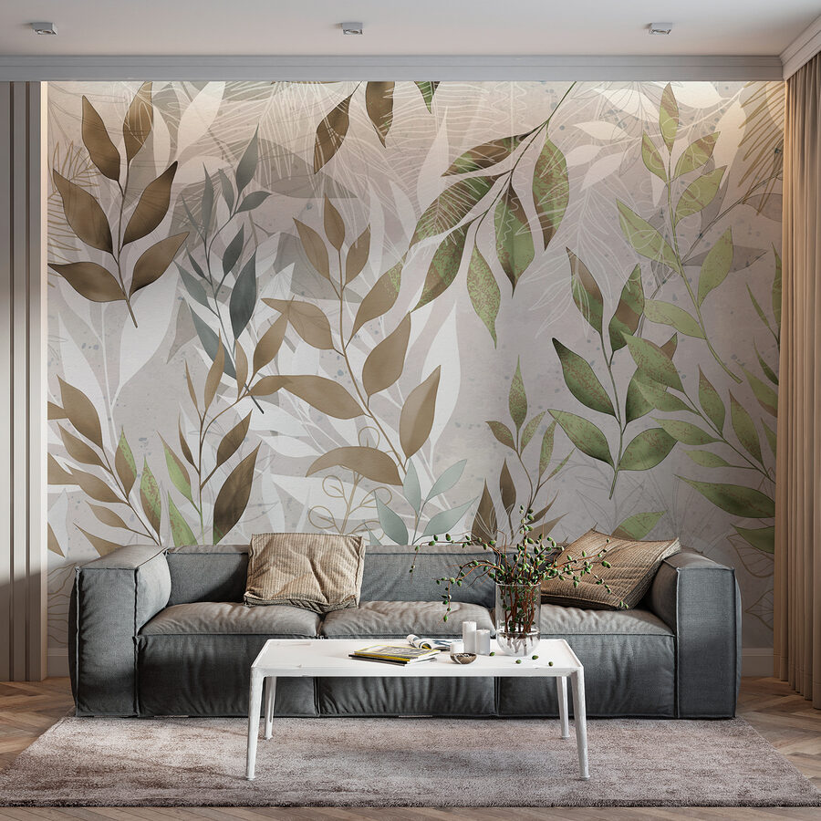 Les couleurs sont des verts et des bruns doux mais vifs, parfaitement mélangés pour donner ce look cool sans effort. Chaque fois que vous la regardez, vous vous sentez un peu plus détendu, comme si vous preniez des mini-vacances. Idéal pour les personnes qui aiment la beauté de la nature mais ne peuvent pas toujours être dehors. Cette peinture murale ne se contente pas de décorer, elle crée une expérience – imaginez des matinées douillettes avec du café, ou des soirées avec de la musique douce, entourés de cette charmante œuvre d’art feuillue. Parfait pour rêver.