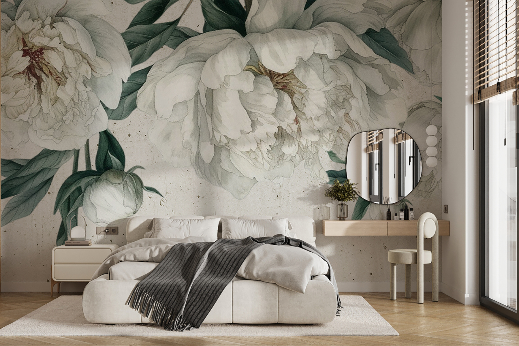 Transformez n’importe quelle pièce avec cette magnifique peinture murale représentant des pivoines blanches nichées parmi des feuilles vertes luxuriantes. Imaginez que vous entrez dans votre espace et que vous avez l’impression de vous promener dans un jardin serein – quelle belle ambiance ! Cette peinture murale n’est pas seulement une pièce décorative ; elle raconte une histoire d’élégance et de tranquillité. Les doux pétales évoquent presque la relaxation, ce qui en fait l’élément idéal pour un coin lecture confortable ou un salon accueillant.