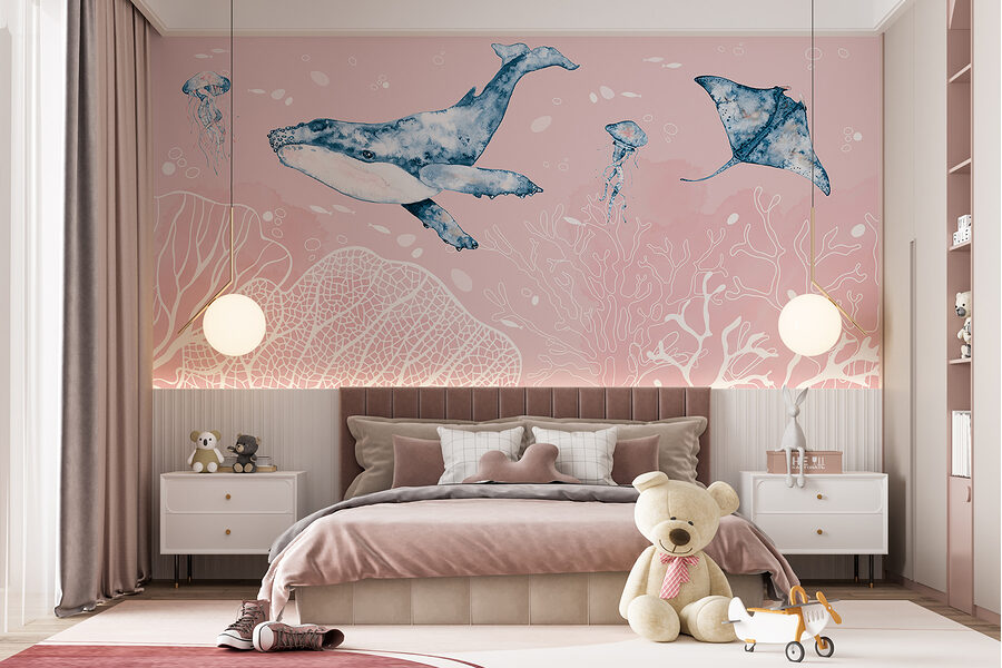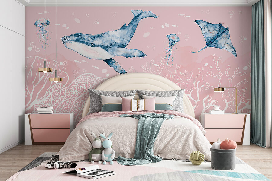 Imaginez que vous entrez dans une pièce et que vous vous retrouvez perdu dans un monde sous-marin serein. Notre peinture murale “Aquarelle d’une baleine” est comme un morceau d’océan sur votre mur. Les teintes pastel oniriques se mélangent sans effort, apportant un sentiment de calme et de fantaisie. Une élégante baleine, de gracieuses méduses et des raies curieuses flottent autour de vous, vous donnant l’impression d’avoir plongé dans une mer magique.