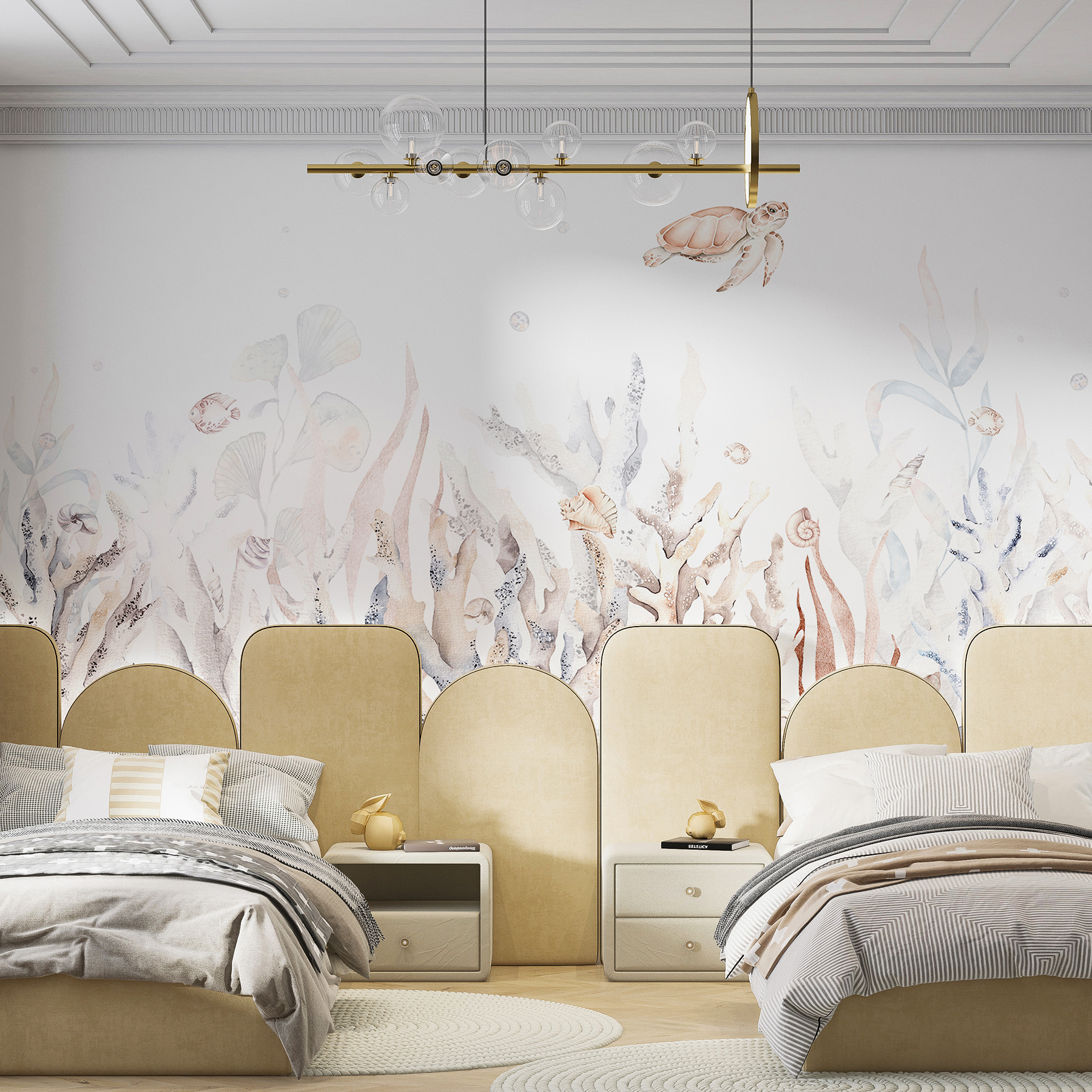 Imaginez la tranquillité de la vie marine dans votre salon ! Cette œuvre murale “Vie marine nageant parmi les coraux”, c’est comme avoir un paradis sous-marin sur votre mur. Les coraux tourbillonnants, les poissons espiègles et les gracieuses tortues de mer apportent une ambiance fraîche et sereine – parfaite pour toute pièce qui a besoin d’une touche d’élégance calme. Imaginez votre bureau ou la chambre de vos enfants avec cette touche de sérénité – c’est comme une mini-vacance quotidienne sans quitter la maison. Une mignonne petite tortue flottant, glissant gracieusement, ne manquera pas d’apporter un sourire sur votre visage à chaque fois que vous la verrez. Le style aquarelle lui confère un aspect doux et artistique, presque comme une peinture de rêve. Si la décoration sur le thème des poissons ou la tranquillité du bord de mer est votre tasse de thé, cette peinture murale couvrira vos murs. Plongez et ajoutez une touche de beauté océanique à votre espace !