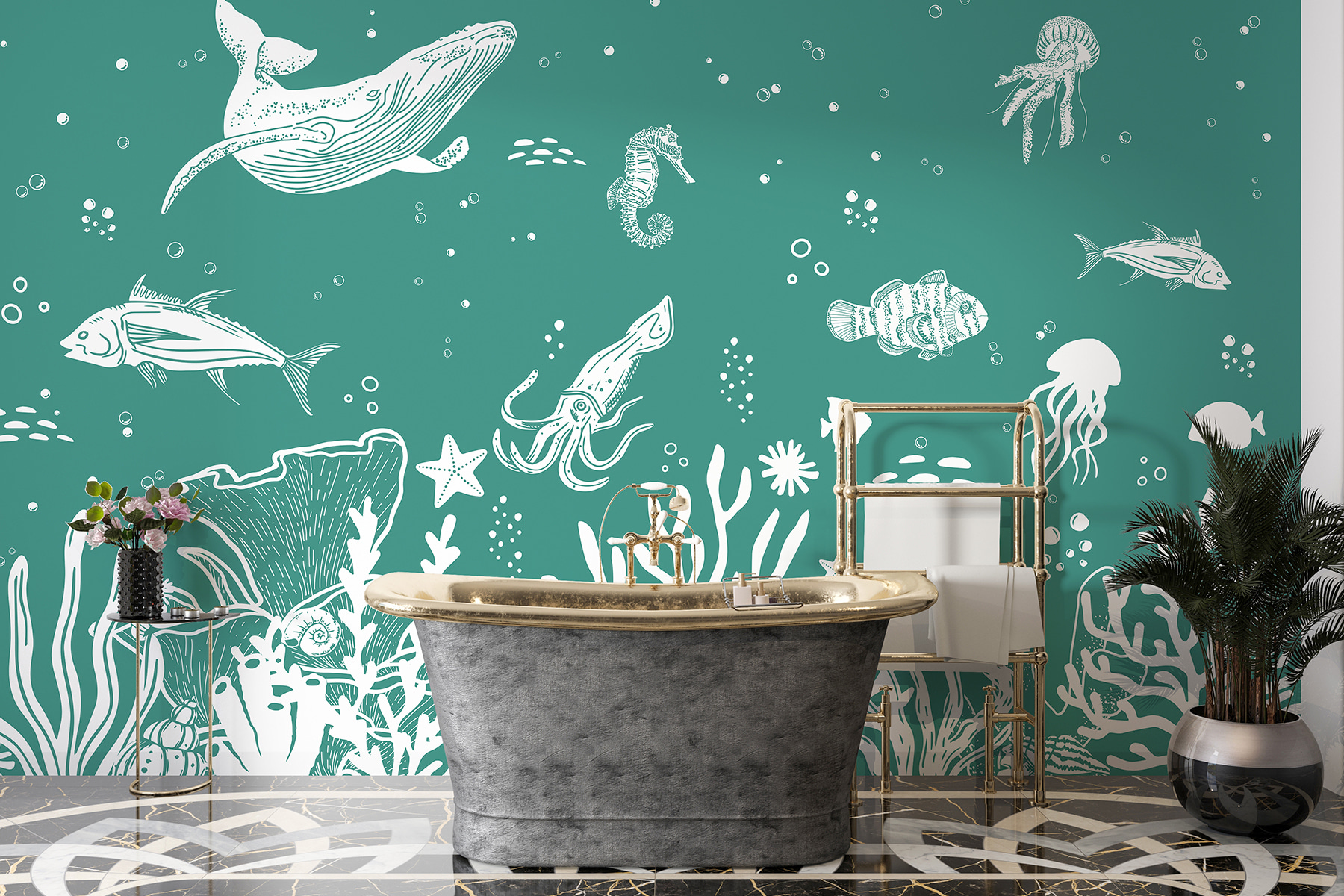 Bonjour les amoureux de l’océan ! Cette peinture murale, “Dessin d’un calmar”, est une délicieuse aventure sous-marine sur vos murs. Imaginez que vous entrez dans votre salon et que vous avez l’impression d’avoir mis le pied dans les profondeurs de la mer – baleine, hippocampe et tout le reste ! C’est comme si vous aviez un mini océanarium chez vous. Parfait pour ceux qui rêvent de bord de mer ou qui souhaitent simplement un espace paisible et proche de la nature. Et puis, qui n’aime pas les calamars ? Ce sont les héros méconnus de la mer ! Fantaisiste, amusant et juste ce qu’il faut de beauté naturelle – c’est une touche de bord de mer sans se mouiller les pieds. Plongez et faites des vagues dans votre décor ! 🌊