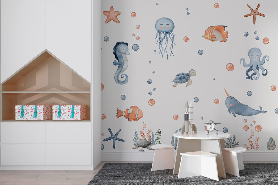Transformez n’importe quelle pièce en une aventure sous-marine fantaisiste avec la peinture murale “Étoiles de mer et bulles”. Imaginez un charmant défilé d’adorables créatures marines – hippocampes, méduses joyeuses et même un sympathique narval – dansant parmi de douces bulles. C’est comme si vous apportiez un morceau de l’océan dans votre maison ! Parfaite pour les chambres d’enfants ou les espaces sur le thème de la plage, cette peinture murale ajoute une touche d’amusement et d’élégance. Imaginez des rires et une imagination débordante lorsque les petits créeront leurs propres histoires à propos de ces amis sous-marins. Un doux rappel de l’esprit ludique de la mer !