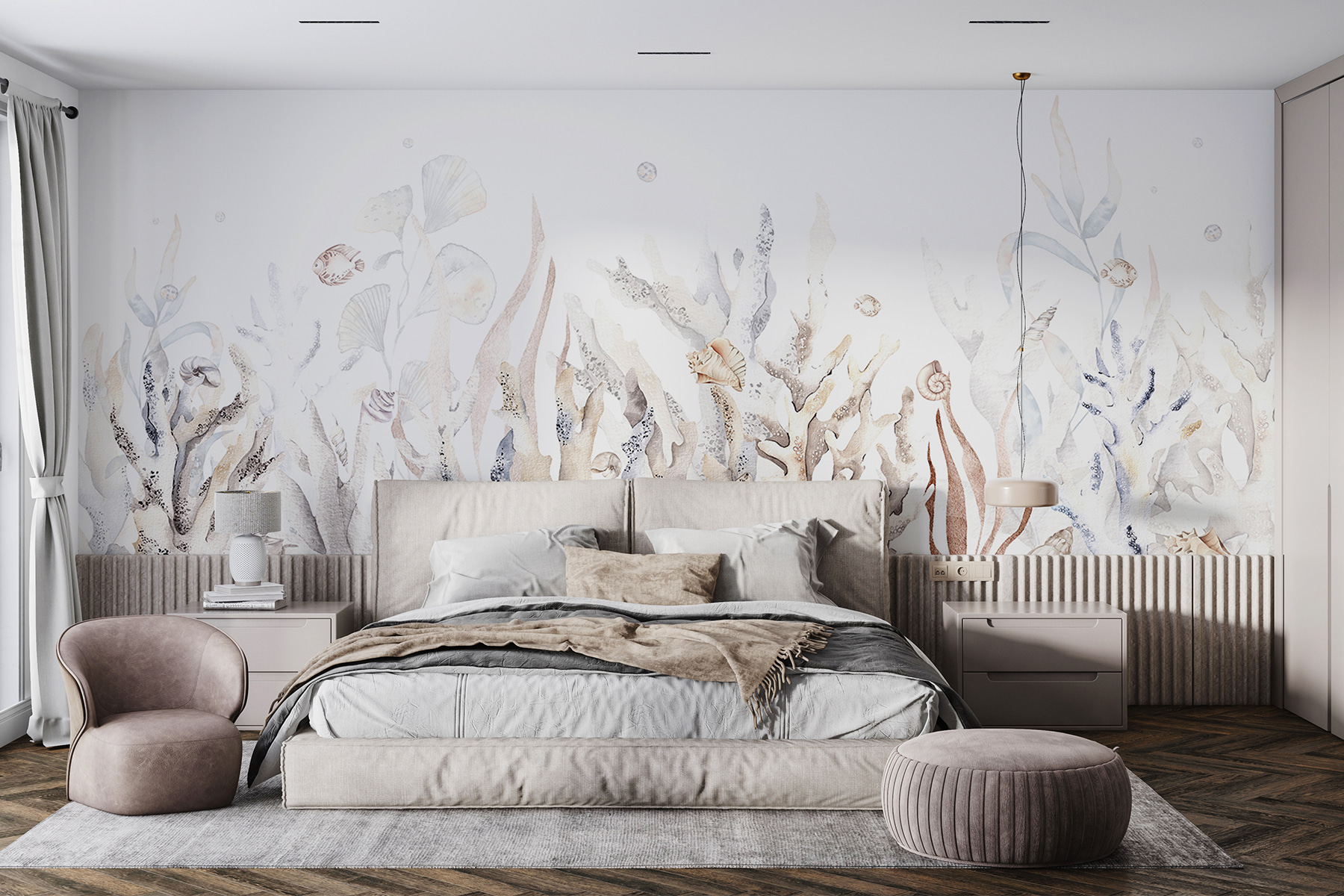 Imaginez que vous entrez dans votre chambre et que vous avez l’impression d’avoir pénétré dans un paradis sous-marin enchanteur. La peinture murale “Jardin sous-marin avec coquillages et poissons” est comme un morceau d’océan dans votre maison. Avec ses couleurs sereines et ses détails délicats, il dégage une atmosphère apaisante, parfaite pour se détendre après une longue journée. Vous pouvez presque sentir la brise fraîche de la mer et entendre les douces vagues, n’est-ce pas ?