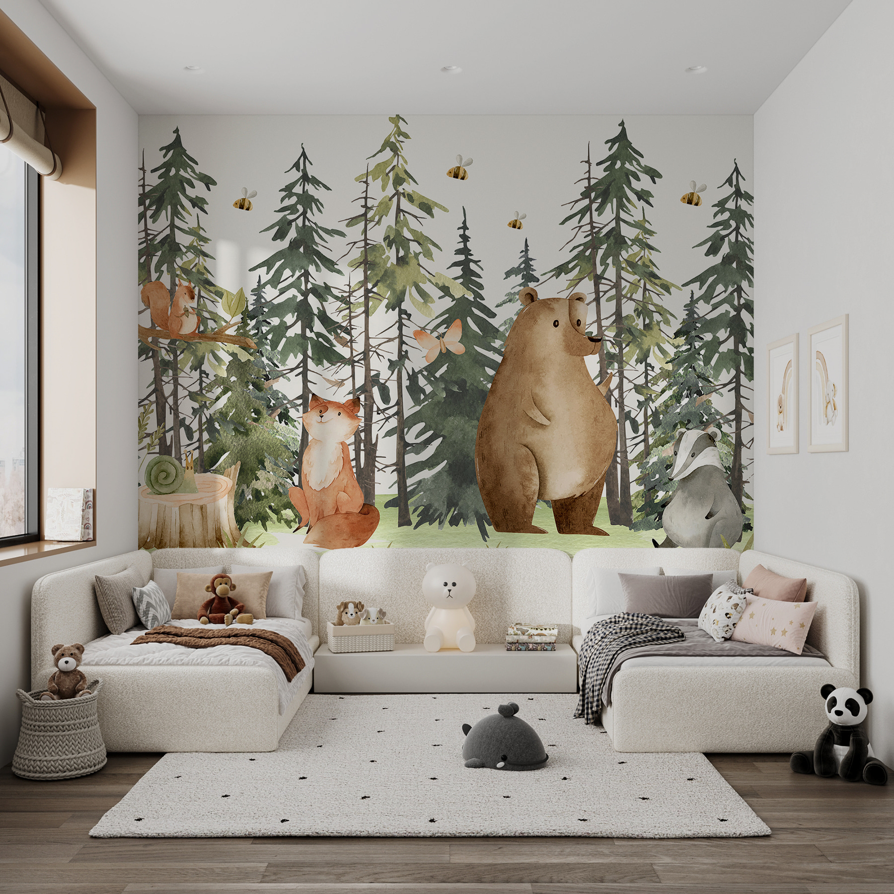 Transformez n’importe quel espace en un pays des merveilles fantaisiste grâce à cette charmante peinture murale représentant un charmant escargot se prélassant sur une souche d’arbre confortable. Imaginez : la lumière chaude du soleil filtrant à travers les grands pins, tandis que de petites créatures comme les renards et les ours se joignent à vous pour prendre le thé – enfin, métaphoriquement parlant ! Les couleurs douces et la faune mignonne dégagent une atmosphère magique qui peut calmer même les esprits les plus occupés. Imaginez que vous vous réveillez devant cette scène joyeuse et que vous vous sentez instantanément enveloppé par la nature. C’est comme si vous faisiez entrer une partie de la forêt dans votre maison, ce qui est parfait pour les chambres d’enfants ou tout autre endroit qui a besoin d’une touche d’enchantement. De plus, il pourrait bien vous inspirer de délicieuses rêveries !