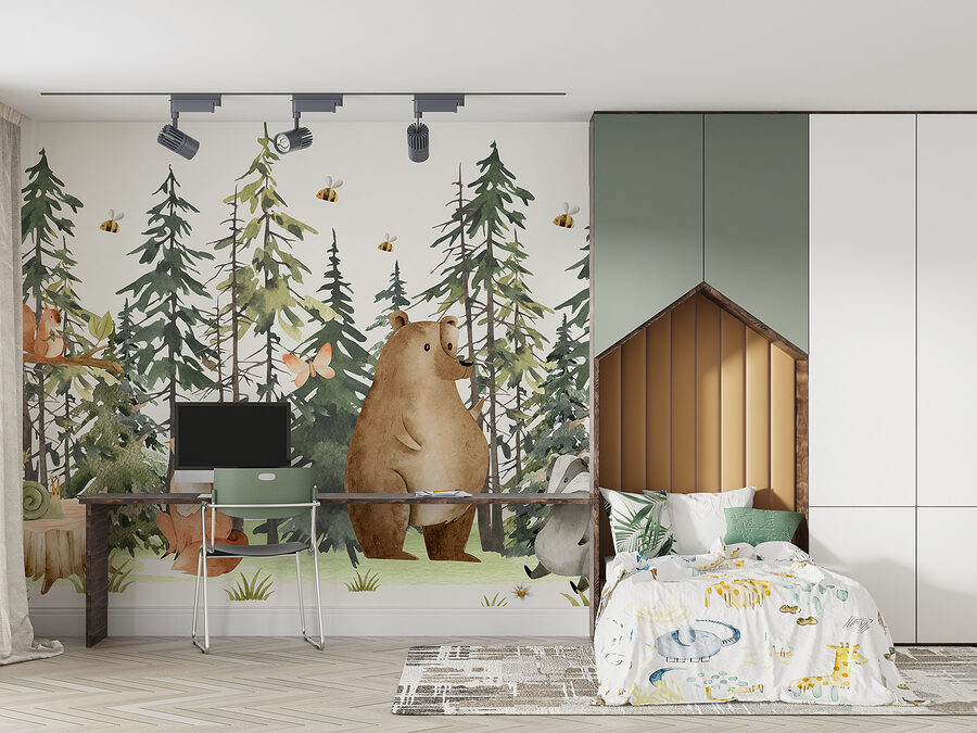 Transformez n’importe quel espace en un pays des merveilles fantaisiste grâce à cette charmante peinture murale représentant un charmant escargot se prélassant sur une souche d’arbre confortable. Imaginez : la lumière chaude du soleil filtrant à travers les grands pins, tandis que de petites créatures comme les renards et les ours se joignent à vous pour prendre le thé – enfin, métaphoriquement parlant ! Les couleurs douces et la faune mignonne dégagent une atmosphère magique qui peut calmer même les esprits les plus occupés. Imaginez que vous vous réveillez devant cette scène joyeuse et que vous vous sentez instantanément enveloppé par la nature. C’est comme si vous faisiez entrer une partie de la forêt dans votre maison, ce qui est parfait pour les chambres d’enfants ou tout autre endroit qui a besoin d’une touche d’enchantement. De plus, il pourrait bien vous inspirer de délicieuses rêveries !