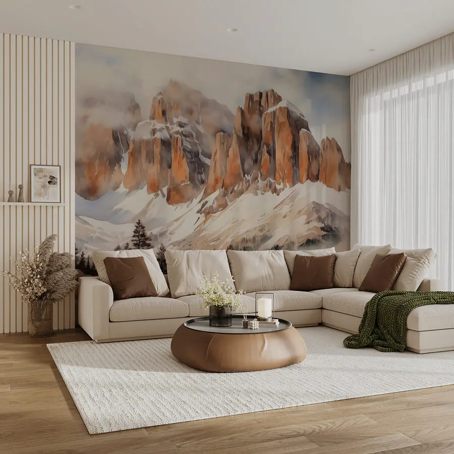 Transformez n’importe quelle pièce avec cette superbe peinture murale d’une chaîne de montagnes enveloppée de nuages doux et parsemée d’arbres résistants. Imaginez : vous vous réveillez et vous êtes accueillis par ces pics majestueux tous les matins ; c’est comme des mini-vacances à la maison. Les couleurs terreuses apportent une ambiance douillette qui rend les espaces chaleureux et accueillants. Qu’il s’agisse d’un salon ou d’une chambre à coucher paisible, cette peinture murale murmure des histoires d’aventure et de sérénité. De plus, c’est un excellent sujet de conversation lorsque des amis viennent à la maison. Qui ne voudrait pas discuter de l’exploration de ces paysages grandioses ?