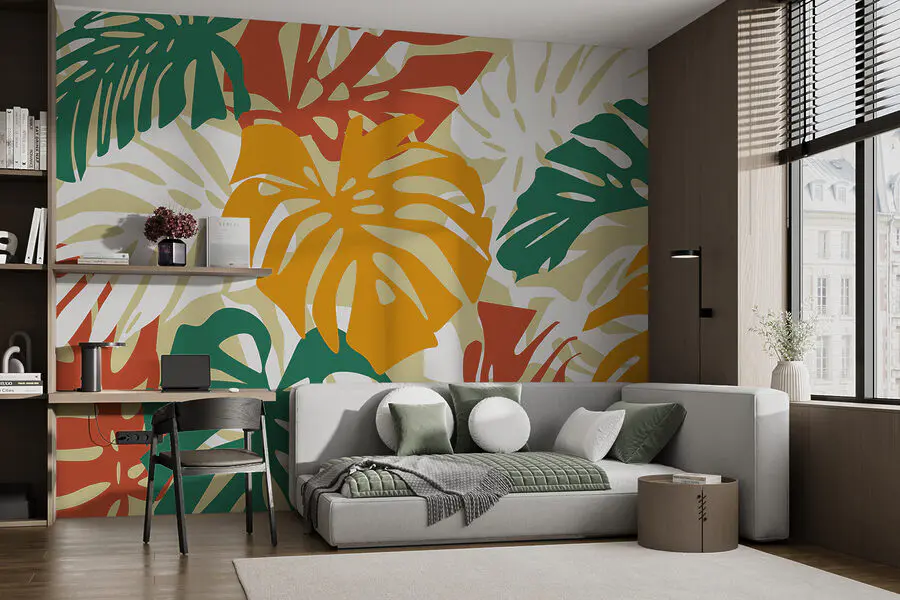 Imaginez que vous pénétrez dans un espace qui ressemble à une escapade tropicale, directement chez vous. Cette peinture murale, avec ses feuilles colorées sur fond blanc, a cette touche vibrante qui peut donner à n’importe qui l’impression d’être un peu plus vivant. C’est comme si vous apportiez un petit morceau de nature à l’intérieur, mais sans les insectes.