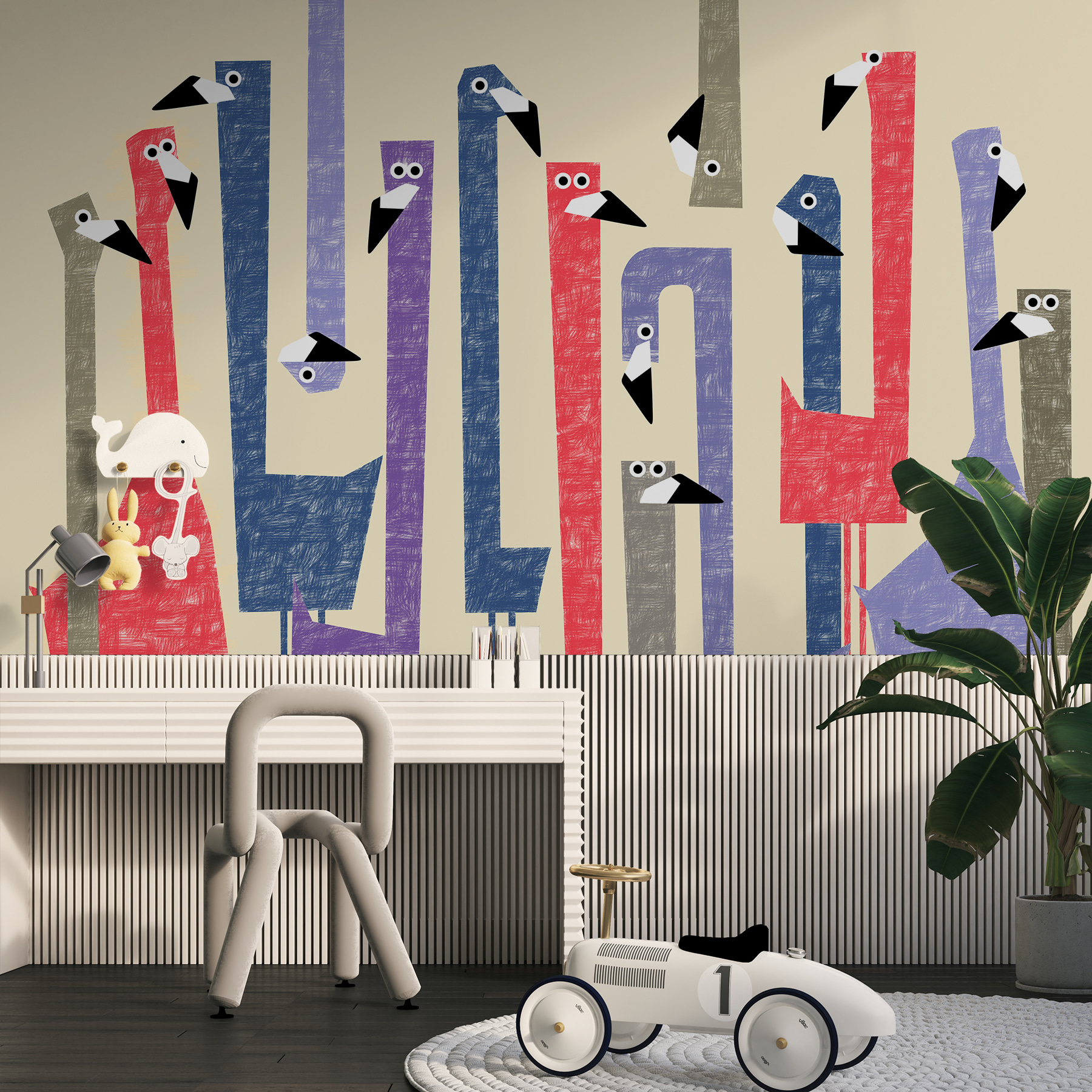 Vous avez toujours voulu un mur qui raconte une histoire de la manière la plus originale qui soit ? Jetez un coup d’œil à cette peinture murale, “Papier peint W01003V1”. Ce n’est pas pour rien qu’elle se trouve dans les catégories “Muraux abstraits” et “Muraux populaires” ! Regardez ces oiseaux colorés et amusants : ne sont-ils pas un signe de personnalité ? Ils transforment n’importe quel mur ordinaire en une aventure. Imaginez que vous vous réveillez et que vous voyez cela – c’est comme une explosion de joie tous les matins !