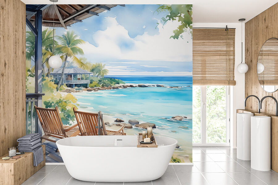 Imaginez que vous entrez dans une pièce et que vous êtes transporté sur une terrasse baignée de soleil, vos pieds sentant la chaleur du bois éclairé par le soleil tandis que les vagues chantent leur éternelle berceuse. Cette peinture murale est plus qu’une jolie image, c’est une invitation à faire une pause et à respirer. Sentez la brise à travers les frondes de l’aquarelle, entendez le doux clapotis de la marée turquoise à proximité. Une évasion quotidienne, chez soi. Parfait pour les rêveurs ou pour tous ceux qui aspirent à une retraite au bord de la mer sur simple pression d’un mur. Les plages, c’est bien, mais ici, c’est la sérénité à l’état pur qui s’impose.