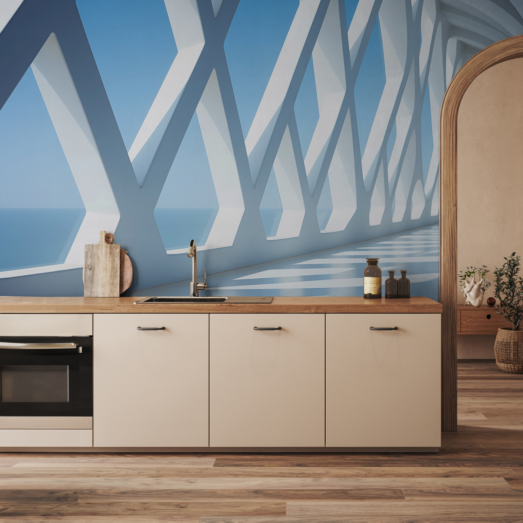 Imaginez : une peinture murale qui transforme votre mur en une scène tout droit sortie d’une galerie d’art futuriste. Le “White Wall with Many Windows” est comme une fenêtre ouverte sur un paradis géométrique. Les lignes nettes et précises et le design en 3D donnent à votre espace une impression d’ouverture, comme un horizon sans fin qui invite à la rêverie. C’est contemporain, mais en quelque sorte intemporel. Imaginez que vous sirotez un thé en contemplant cette peinture murale et que vous vous sentez enveloppé d’une étreinte de créativité et de paix. Une touche originale pour toute pièce qui a besoin d’un peu de magie.