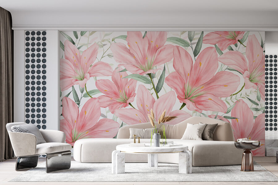 Imaginez que vous entrez dans une pièce où chaque mur murmure un doux bonjour avec des lys en fleurs, d’un rose tendre et élégamment posés. Cette peinture murale – appelons-la le voleur de scène – apporte un peu de nature à l’intérieur, avec un soupçon de conte de fées. C’est comme si vous organisiez une garden party sans vous soucier du temps qu’il fait ! Parfait pour ceux qui aiment le mélange de l’art et de la nature, c’est comme une étreinte personnelle de Mère Nature elle-même. Les invités vous demanderont peut-être où vous avez trouvé cette superbe “œuvre d’art”, et vous n’aurez qu’à sourire, hocher la tête en connaissance de cause et laisser les lys parler d’eux-mêmes.