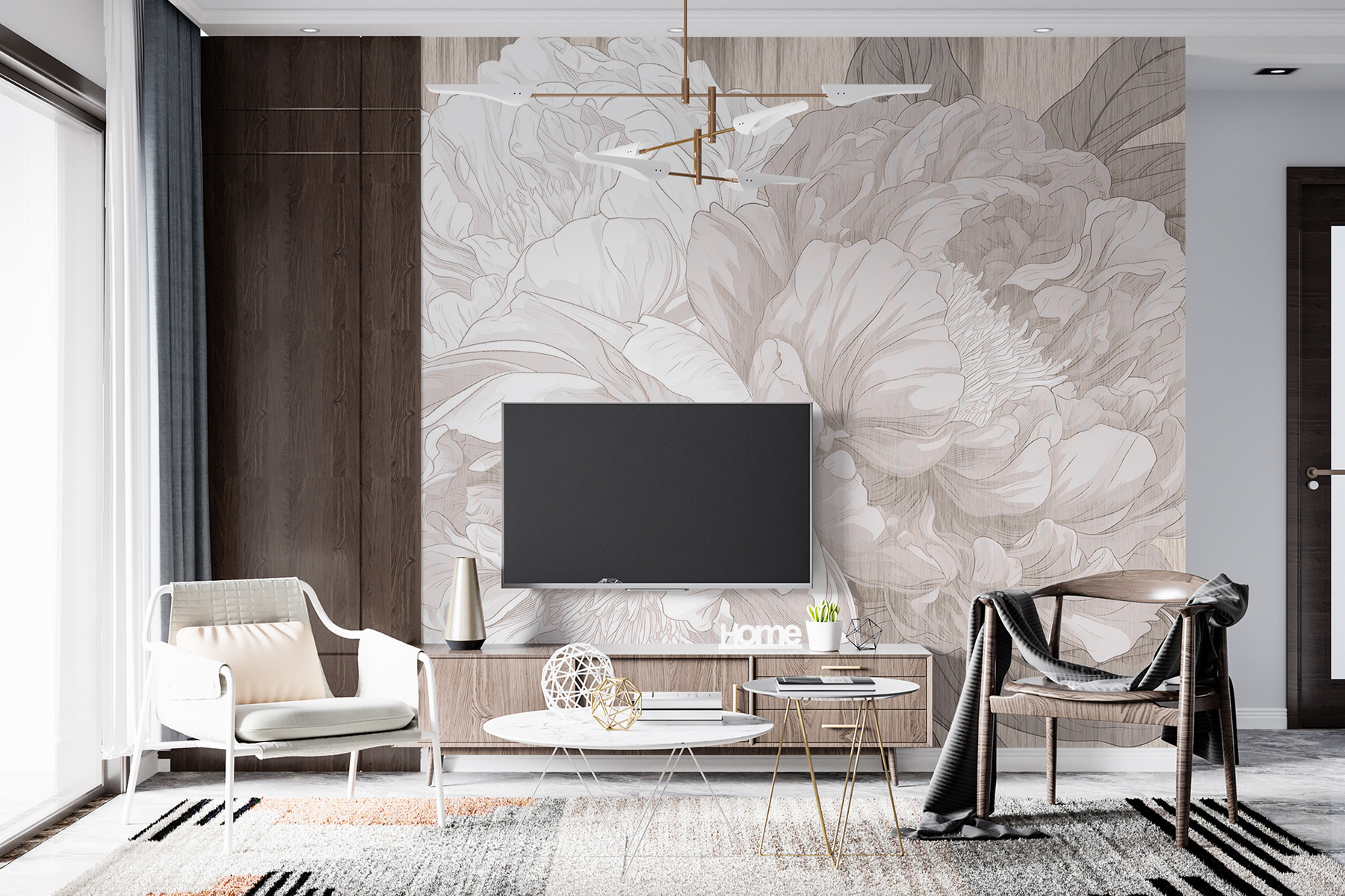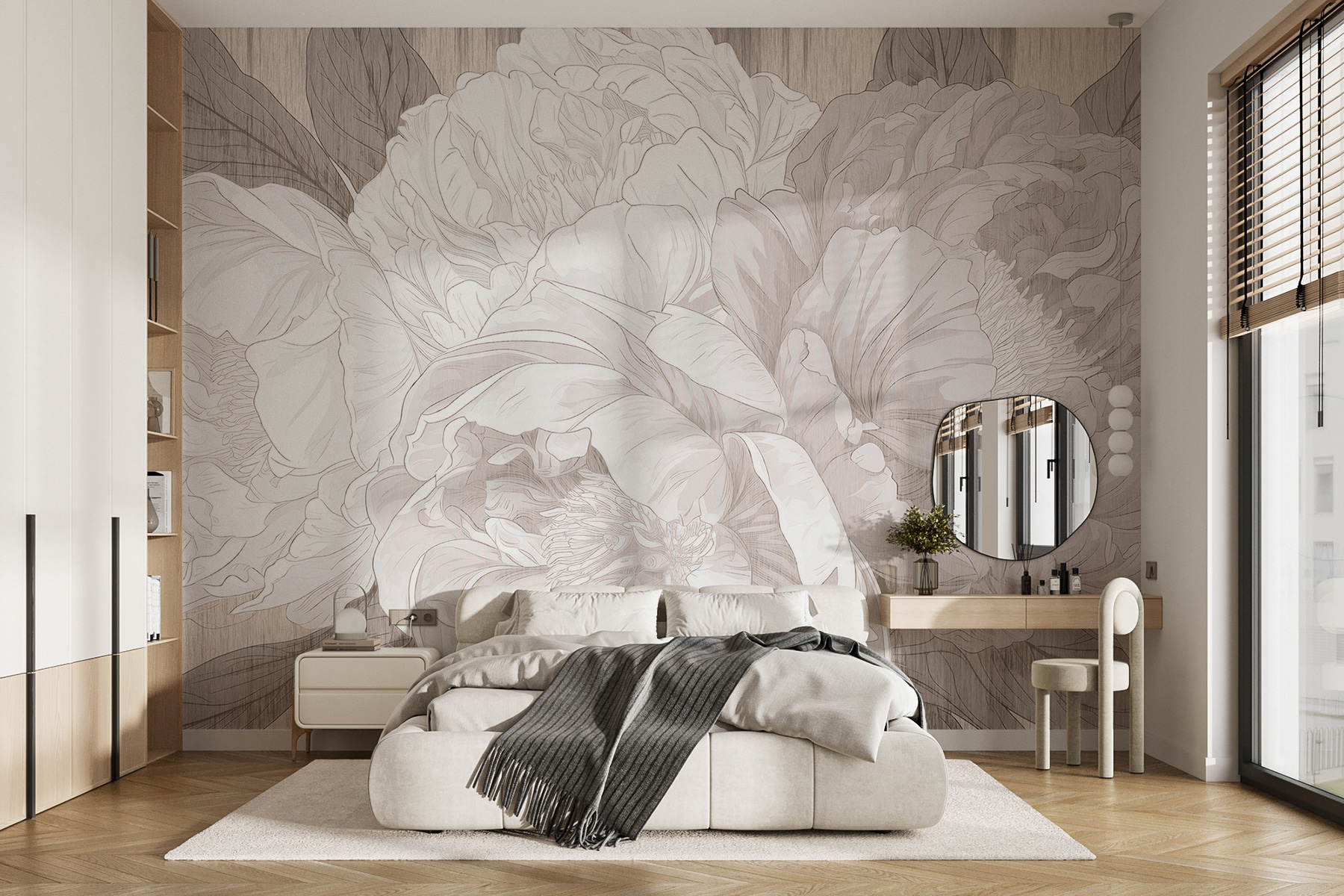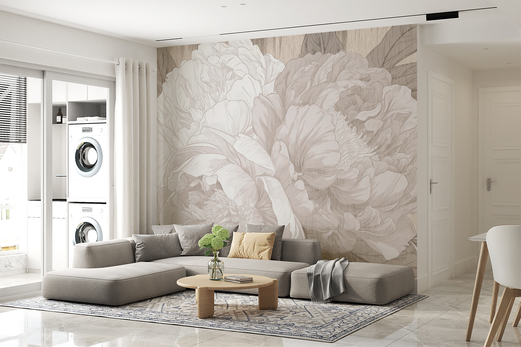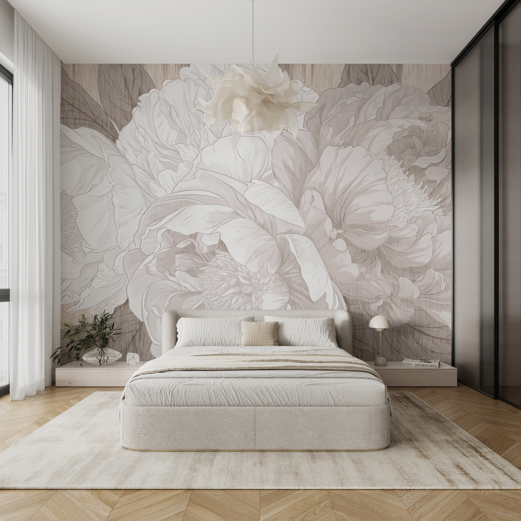 Imaginez ceci : vous vous prélassez dans votre salon, une tasse de thé à la main, et une magnifique peinture murale de pivoines orne votre mur. C’est comme si les fleurs elles-mêmes chuchotaient l’élégance dans la pièce. L’esquisse monochrome lui confère une ambiance sophistiquée, comme si vous vous trouviez dans une galerie d’art chic ou peut-être même dans un jardin enchanté. Parfait pour tous ceux qui aiment un soupçon de charme de la nature sans le crier sur tous les toits. De plus, il apporte une ambiance calme et paisible, un peu de tranquillité dans les journées chargées. Idéal, non ?