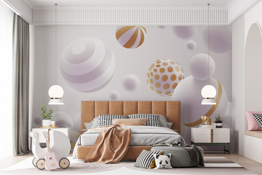 “Des sphères élégantes dans un flux serein” capture la magie de voir des bulles danser dans l’air, sans avoir à les poursuivre. Cette peinture murale est parfaite si vous aimez l’ambiance spacieuse et aérée, mais que vous ne voulez pas bouger. Les sphères semblent dériver et tourbillonner, créant un effet 3D qui fera éclater vos murs, littéralement. Imaginez que vous sirotiez un café en laissant votre esprit vagabonder dans ces orbes ludiques – votre propre jardin zen. C’est le calme instantané, sans avoir besoin d’un tapis de yoga ou d’une application de méditation. Qui aurait cru que la géométrie pouvait être aussi apaisante ?