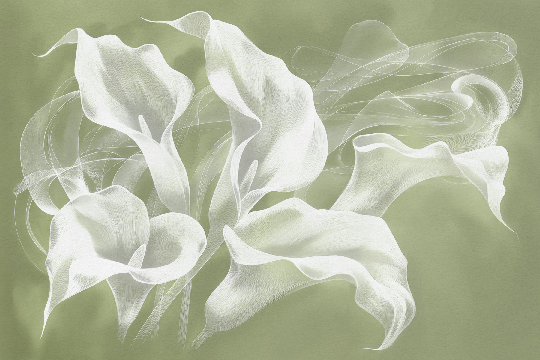 Imaginez que vous pénétrez dans un espace qui ressemble à un jardin serein, sans la saleté et le pollen. Cette peinture murale représente de délicats lys calla blancs dansant sur un fond vert tendre, apportant une ambiance fraîche et aérée. C’est comme une bouffée d’air frais printanier, sans les allergies.
