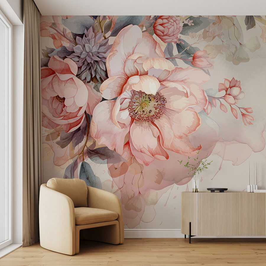 Imaginez donc que vous puissiez transformer votre espace avec cette superbe peinture murale, “Aquarelle en pastels doux”. C’est comme si vous faisiez entrer un jardin serein dans votre pièce. Les douces teintes de rose, de crème et de vert évoquent une atmosphère apaisante, presque rêveuse. Parfait pour un passionné de fleurs ou toute personne souhaitant ajouter une touche de nature sans être trop audacieux.