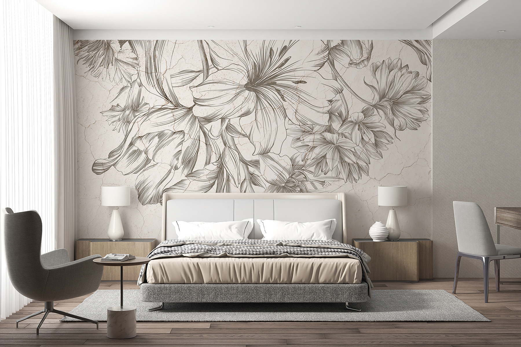 Imaginez que vous entrez dans une pièce et que vous êtes accueilli par le charme subtil de cette peinture murale “Esquisse élégante de fleurs intemporelles”. C’est comme si vous entriez dans un roman vintage confortable où les fleurs chuchotent des secrets d’antan. Les lignes délicates et l’ambiance classique peuvent donner à n’importe quel espace l’impression d’une évasion sereine. Parfait pour siroter un thé ou rêvasser près de la fenêtre. La peinture murale est un élément qui améliore instantanément l’humeur, transformant des murs simples en une toile de l’élégance de la nature. Qui aurait cru que les peintures murales pouvaient être aussi réconfortantes, n’est-ce pas ?